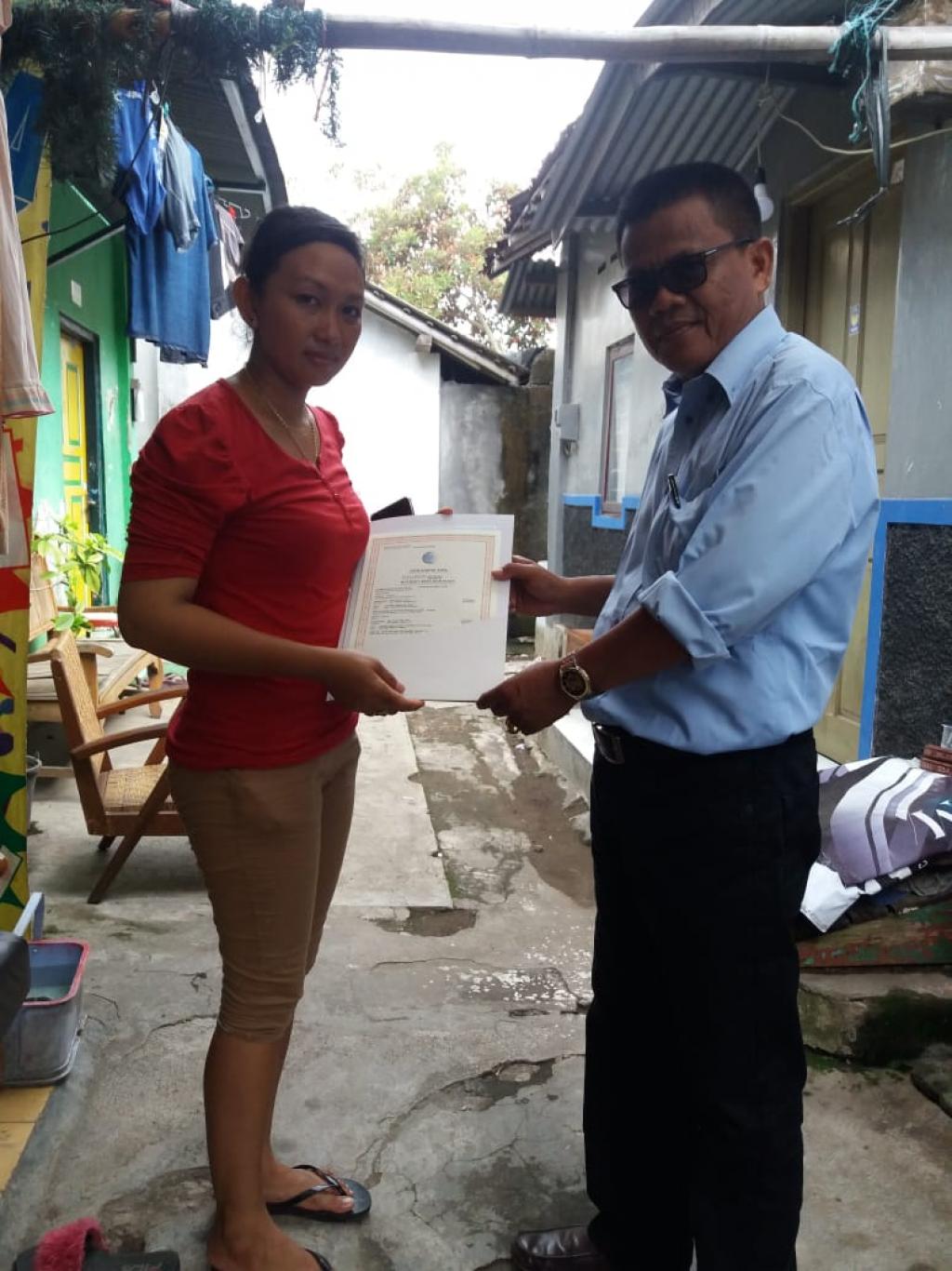 Sonosewu (31/12) Dukuh Sonosewu Supriyanto memberikan akte Kematian Alm Duana melalui program SIMPATI kepada keluarga ahli warisnya.