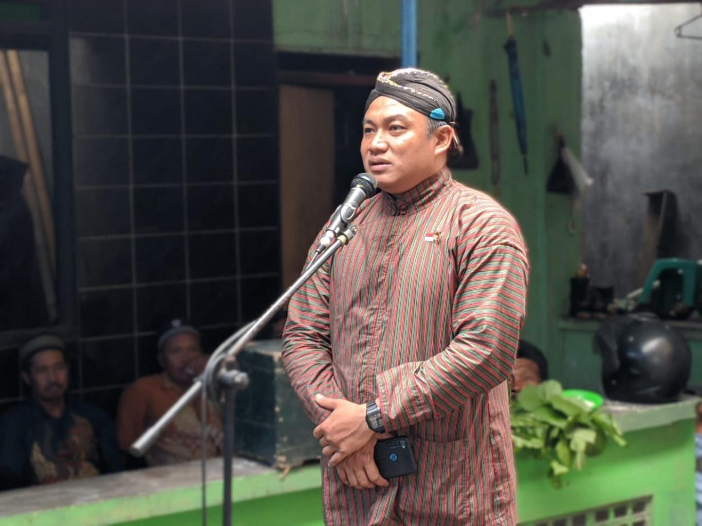 Janten (2/2) Lurah Desa Ngestiharjo memberikan sambutan pelepasan jenazah dan memberikan akte kematian Alm Ponijan melalui program SIMPATI kepada ahli warisnya.
