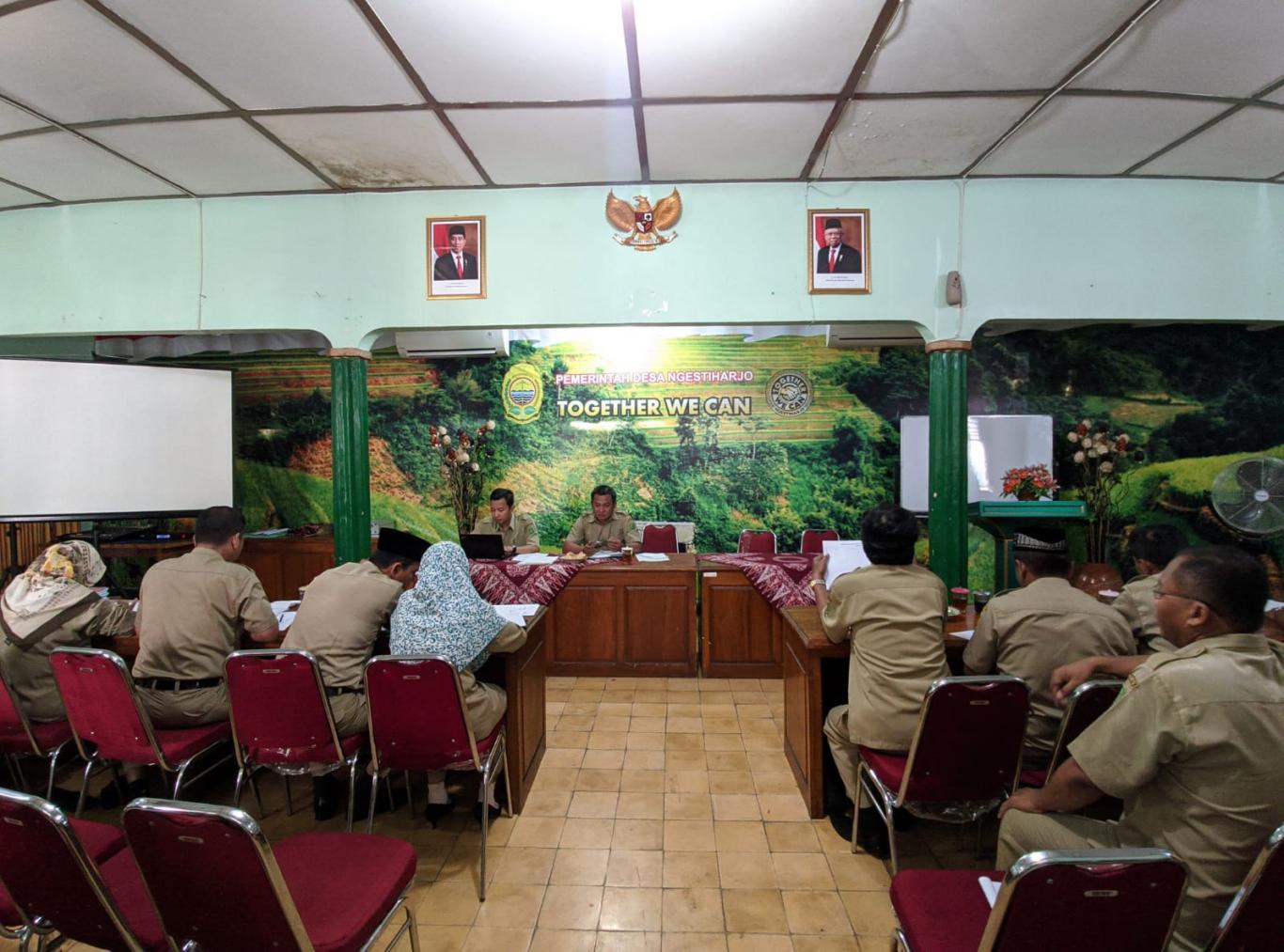 Ngestiharjo (27/01) Lurah Desa Ngestiharjo Fathoni Aribowo memimpin rakor pamong desa di aula Desa. Acara ini di hadiri oleh Carik, Kasi, Kaur, Dukuh dan Staf Desa. Dalam Rakor rutin ini di awali dengan pembukaan acara oleh carik desa, dilanjutkan dengan laporan kegiatan kasi dan kaur selama seminggu kemarin. Dari laporan yang di sampaikan kasi dan kaur ada beberapa program dari pemerintah kabupaten Bantul yang harus di tindaklanjuti oleh desa seperti updating data anak yatim dan kaum rois yang di beri batas waktu 31 Januari 2020.