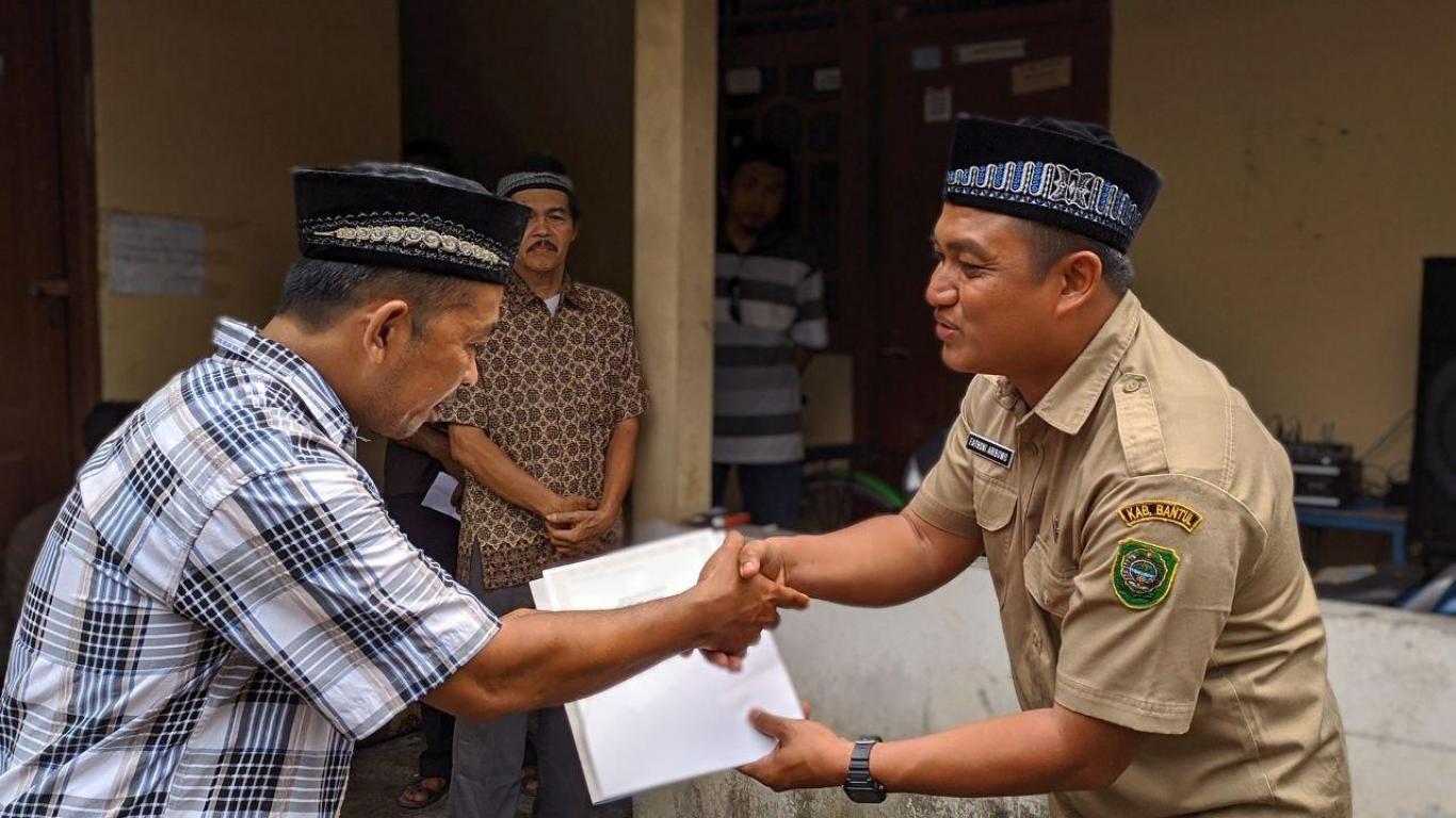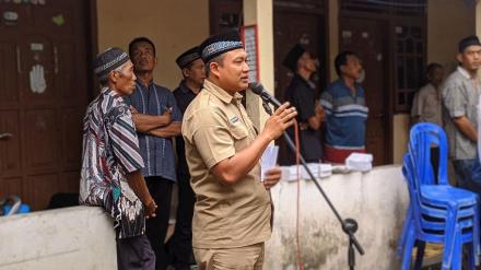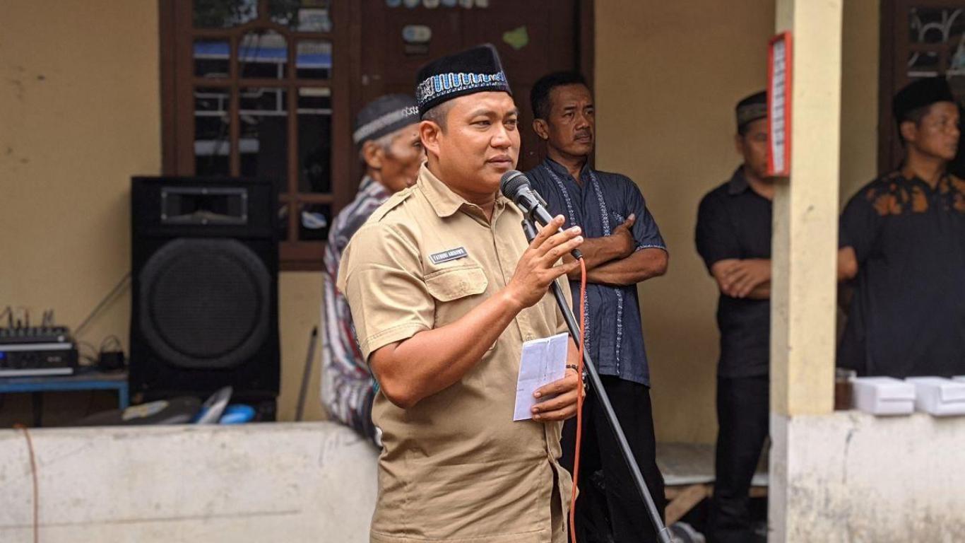 Kadipiro (3/2) Lurah Desa Ngestiharjo Fathoni Aribowo memberikan sambutan pelepasan dan penyerahan akte kematian melalui Program SIMPATI kepada ahliwaris keluarga alm Bapak Soerip Atmo Martono.