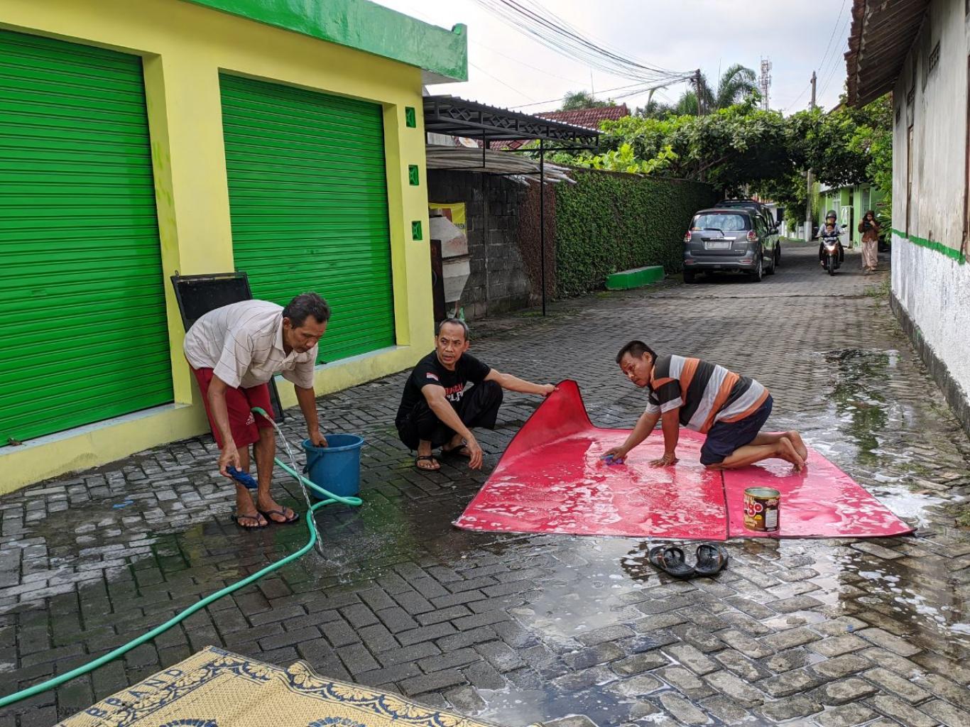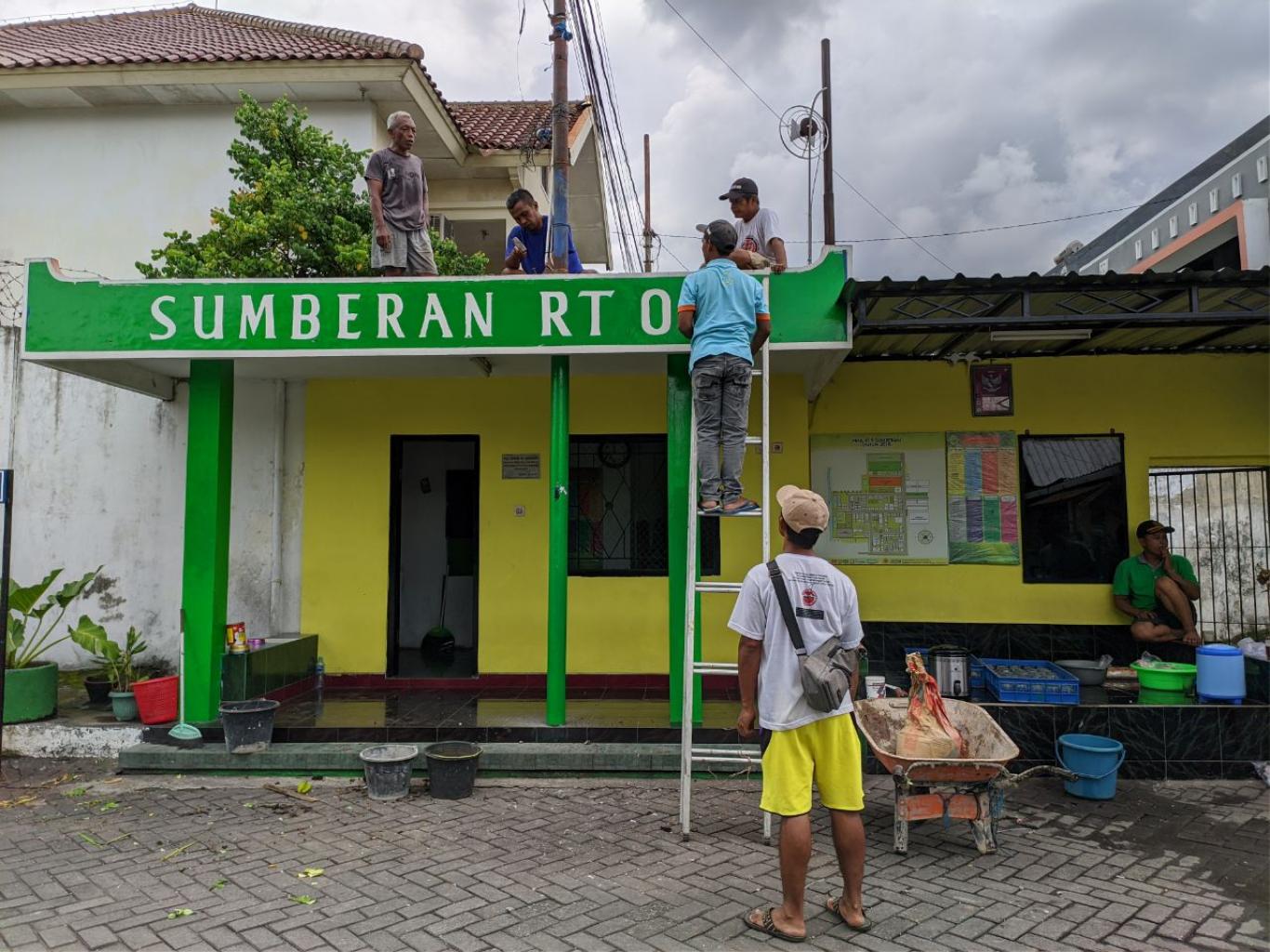 Sumberan (16/2) Warga RT 09 Sumberan khususnya pemuda dan bapak-bapak menyelenggarakan kegiatan kerja bakti. Kerja bakti ini difokuskan pada pembersihan dan perbaikan Cor atap pos kamling RT 09. Warga juga membersihkan lokasi tanah yang akan dibangun paud Sumberan dan membersihkan tutup selokan sebelah timur Mushola Al Hijrah Sumberan.