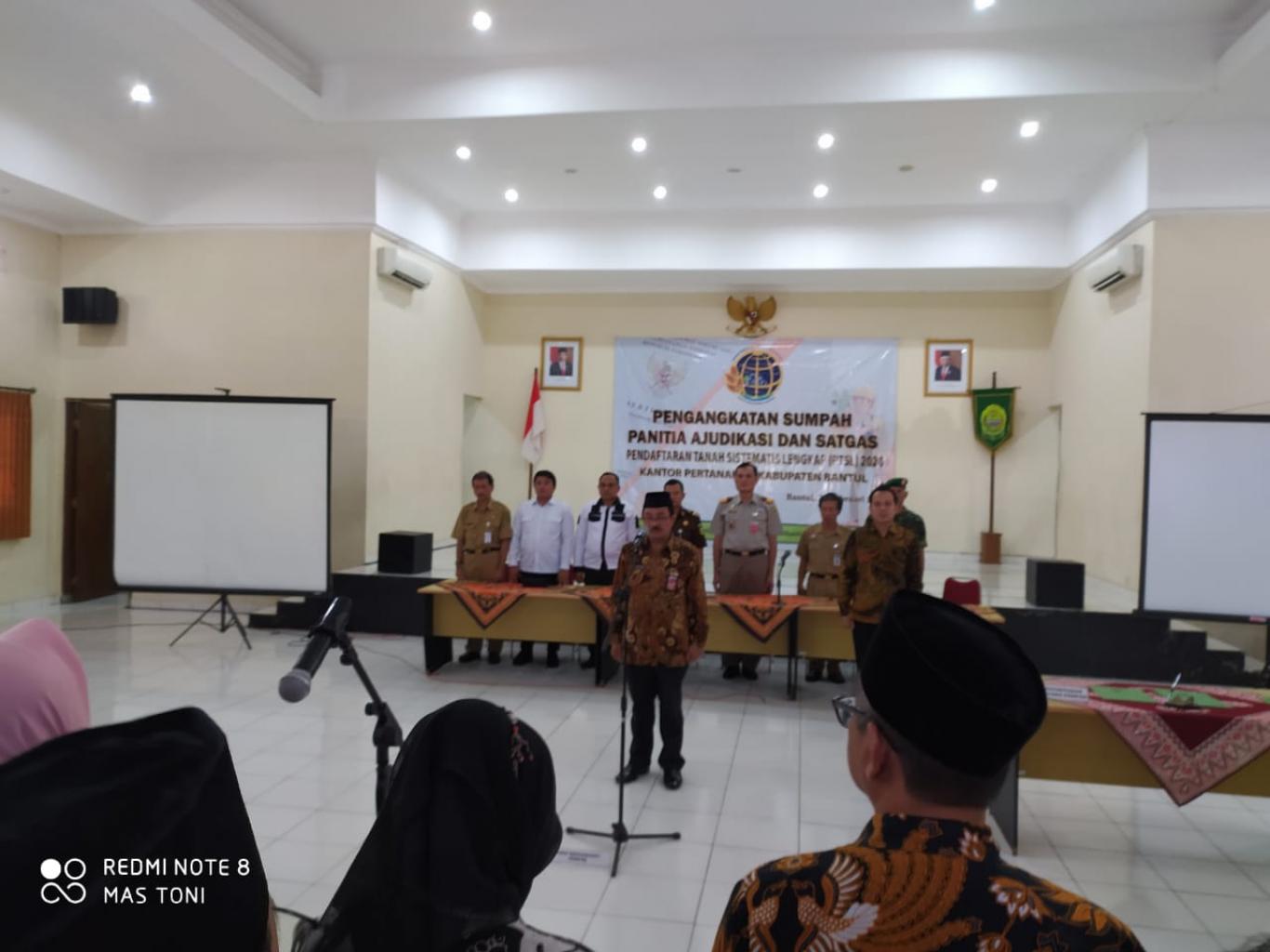 Dalam acara pelantikan yang di hadiri oleh beberapa OPD dan Dinas seprti kejaksaan, kepolisian dan Kepala BPN Kab Bantul. Pelantikan  kepada beberapa panitia ajudikasi dan stagas yang berada di seluruh desa di Kabupaten Bantul.