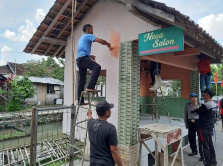 Kemudian dilanjutkan dengan pembagian personil untuk pengecatan pos ronda di lokasi yang telah di tentukan.