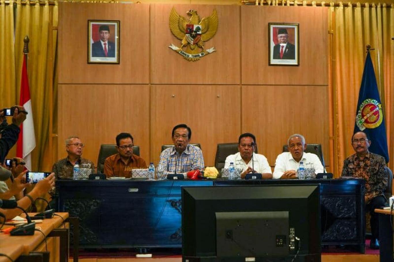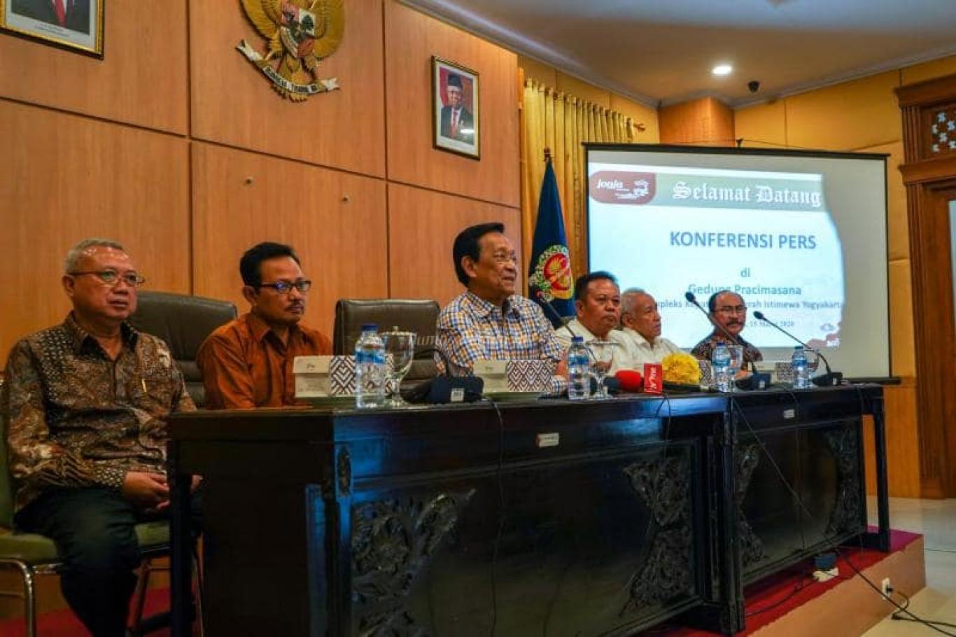 Yogyakarta (15/03/2020) jogjaprov.go.id – Menanggapi situasi dan kondisi di Daerah Istimewa Yogyakarta terkait Corona Virus Disease (COVID19), Gubernur Daerah Istimewa Yogyakarta Sri Sultan Hamengku Buwono X mengadakan jumpa pers dengan kalangan media pada Minggu (15/03) siang di Gedhong Pracimosono, Kompleks Kepatihan, Yogyakarta. Terdapat lima pokok hasil dari tindak lanjut penanggulangan virus COVID19 tersebut yakni: