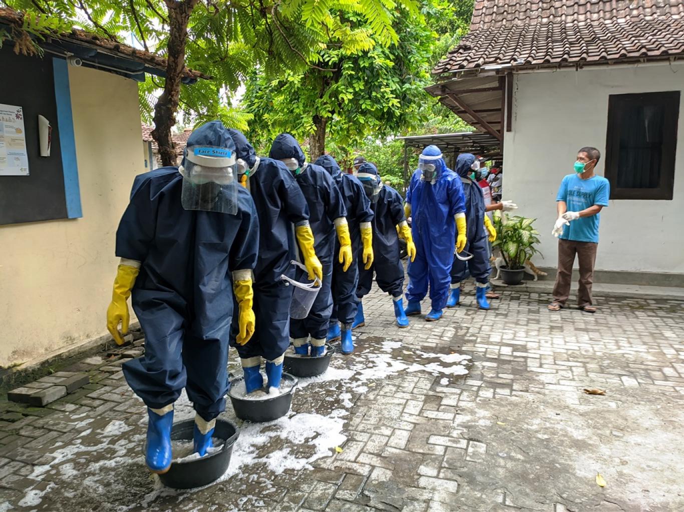 Selesainya penguburan, relawan kemudian melakukan dekontaminasi dan mandi di Masjid terdekat.