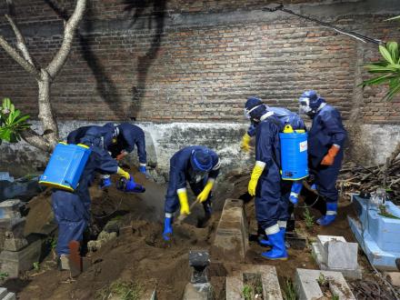 Kadipiro,Ahad, 11 Oktober 2020, Tim Pemakaman Desa Ngestiharjo melaksanakan Pemulasaran Jenazah Infeksius di Makam Kadipiro RT.05.