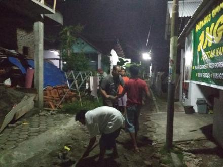 Rabu (9/4) Warga RT 04 & 05 pedukuhan XI ONGGOBAYAN, Ngestiharjo kecamatan kasihan kabupaten bantul, melaksanakan pengerjakan penggatian paving blok dijalan janoko RT 05 dg panjang 37m lebar 2,2 m.
