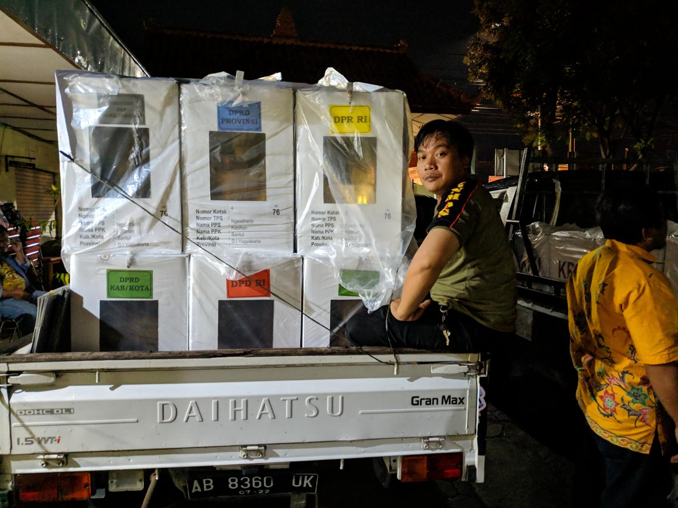 Pengantaran kotak suara baru bisa dilaksanakan setelah magrib karena kotak suara terakhir baru datang dsri KPU jam 5 sore...