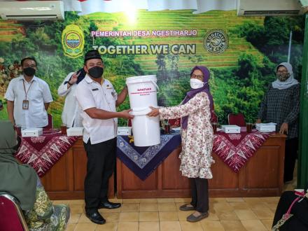 Pelatihan berisi tentang cara mengolah kompos dari sampah basah. pelatihan diakhiri dengan penyerahan tong dan foto bersama