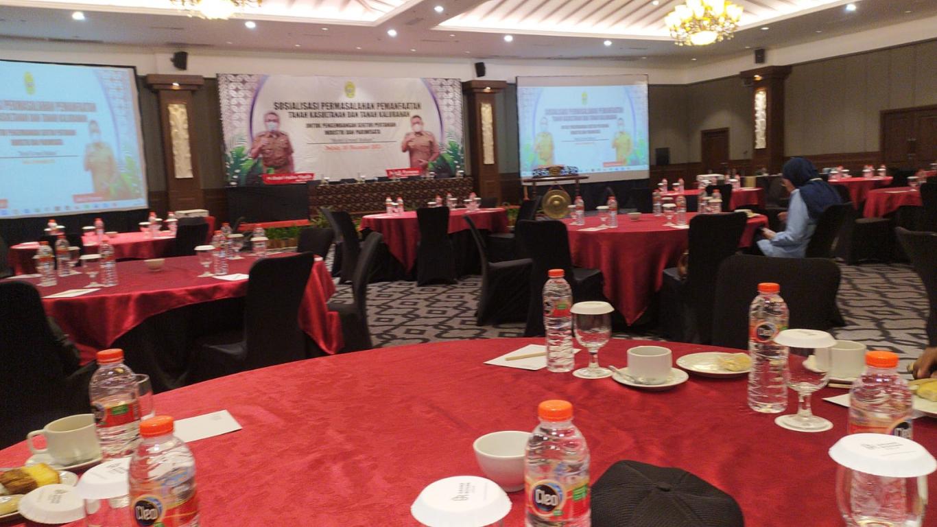 Yogyakarta (29/11) Lurah Ngestiharjo menghadiri sosialisasi permasalahan pemanfaatan tanah kasultanan dan tanah kalurahan di Hotel Grand Rohan.