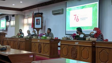 Rakor tindak lanjut rencana penetapan APBKal TA 2022 yg dihadiri oleh Wakil Bupati, Kabag Adpemdes, kabag hukum, kadis DPPKBPMD, kadis Dinsos, Panewu & Lurah se Kabupaten Bantul