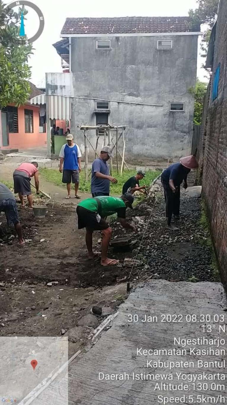 Janten (30/01) Warga masyarakat pedukuhan Janten menyelenggarakan Kerja Bakti Corblok Gang RT.03 dan Berem Jalan Amarta RT.10-11 Janten.