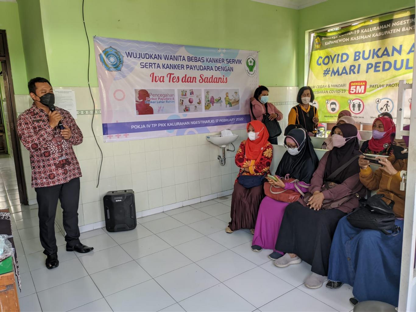 Sonosewu (17/02)Pokja 4 TP PKK Kalurahan Ngestiharjo dibantu Puskesmas Kasihan 2 menyelenggarakan Iva Tes dan Sadanis di gedung Puskesmas Pembantu di Sonosewu . Acara ini bertujuan untuk mewujudkan wanita bebas kanker serviks serta kanker payudara. Acara ini dihadiri oleh Kepala Puskesmas II Kasihan, Lurah Ngestiharjo, Kader Pokja 4 PKK Ngestiharjo dan 50 peserta yang ingin diperiksa.