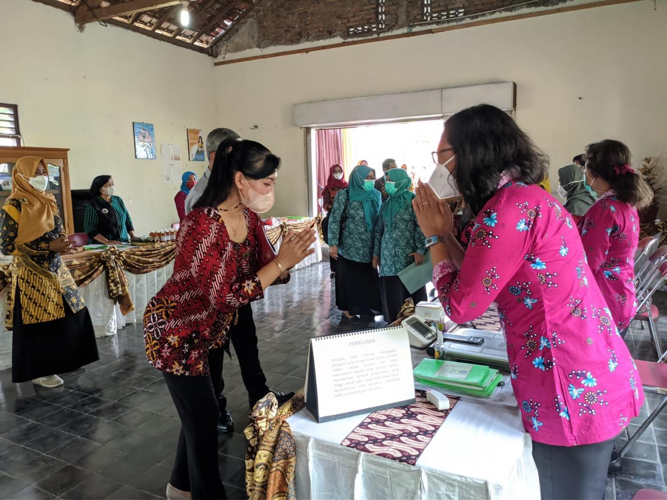 Jomegatan (18/03) Tim Juri Lomba penglolaan Posyandu Tingkat Kabupaten Bantul lakukan kunjungan dan penilaian Posyandu Mekar 1 Jomegatan di Gedung Serba Guna Jomegatan. Tim Juri yang dipimpin oleh Kepala Dinas PMK Bantul Dra. SRI NURYANTI, M.Si bersama Ibu Wakil Bupati Bantul Dwi Pudiyaningsih datang sekitar pukul 13.00 WIB. Gending Jawa yang ditabuh oleh Kelompok Mekar Budaya Jomegatan turut menyambut kedatangan rombongan..