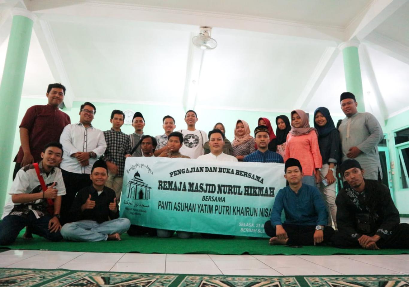 Selasa (21/5) telah terlaksana program baru dari remaja Masjid Nurul Hikmah Cungkuk, yaitu silaturahmi dengan panti asuhan yatim putri khairun nisa' yg beralamat di Berbah Sleman. Acara tersebut diawali dengan tausiyah oleh ustad dedy yulianto dilanjutkan dengan buka bersama dan shalat maghrib berjamaah.
