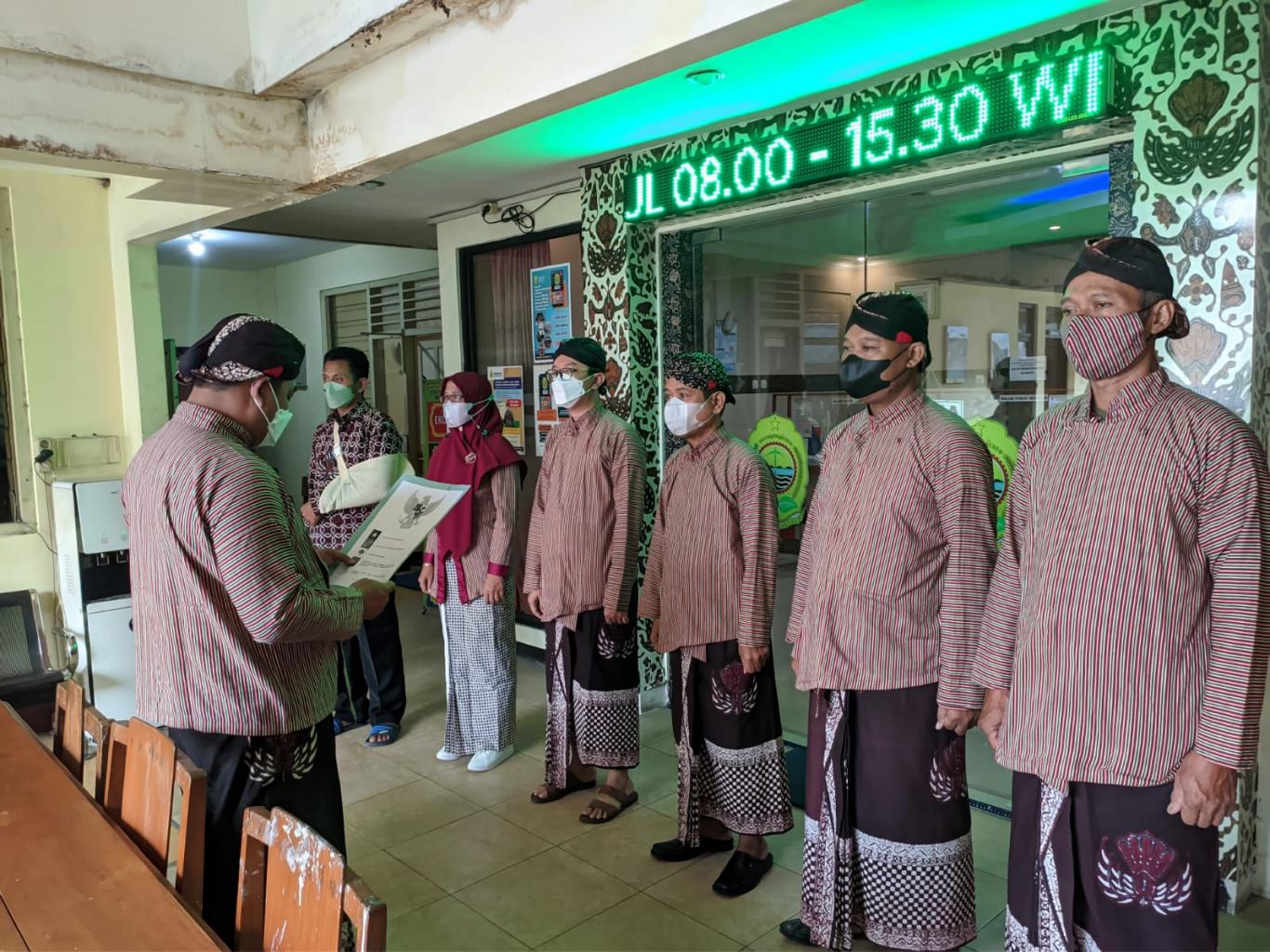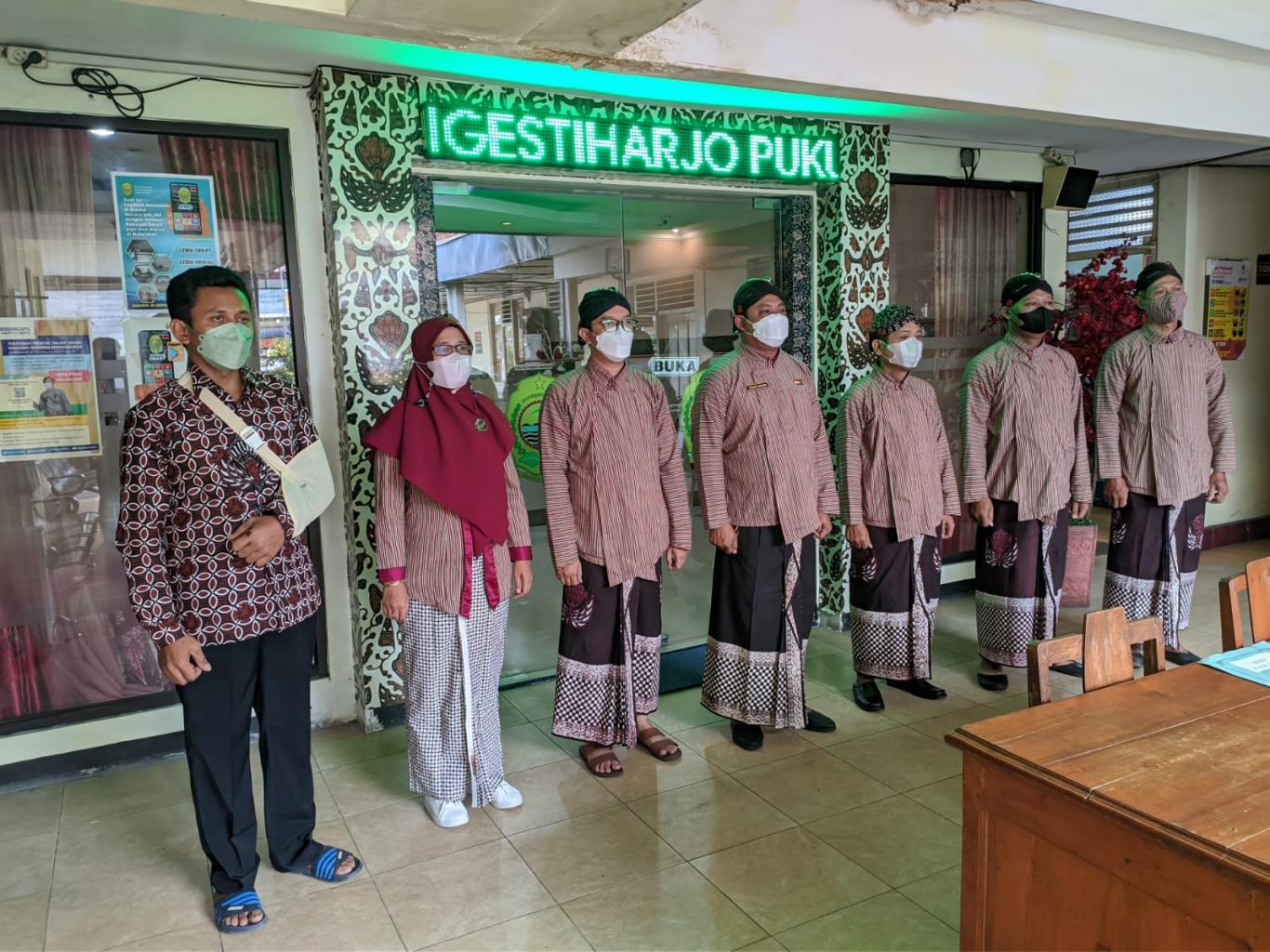 Ngestiharjo (30/06) Pamong Kalurahan Ngestiharjo menyanyikan lagu Indonesia Raya dilanjutkan membaca Pancasila tepat pukul 08.00 WIB dan mengenakan baju adat jawa karena bertepatan dengan Kamis Pahing.