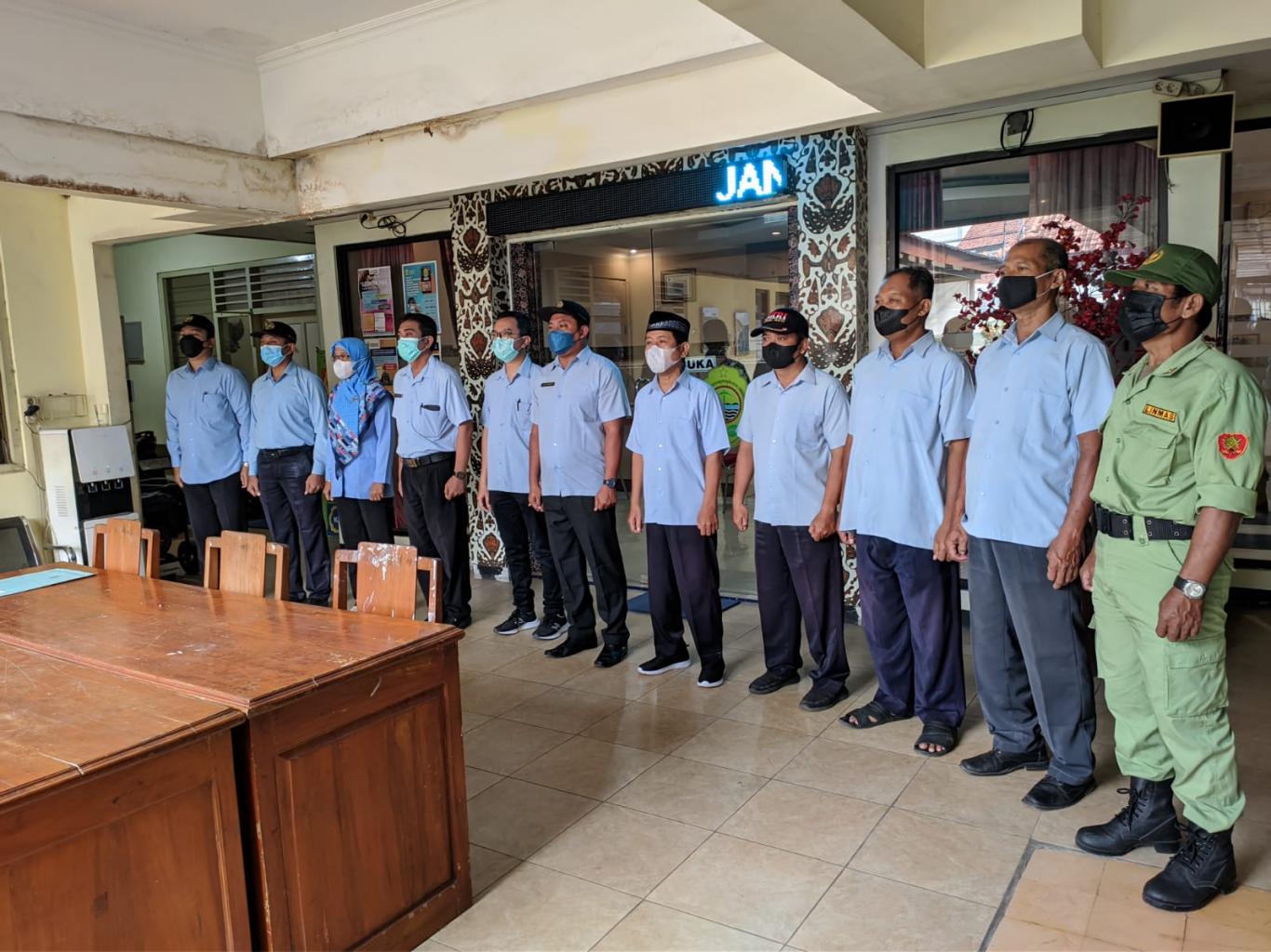 Ngestiharjo (02/08) Pamong Kalurahan beserta Satlinas Ngestiharjo tepat pukul 08.00 menyanyikan Lagu Kebangsaan Indonesia Raya kamudian dilanjutkan dengan pembacaan Teks Pancasila oleh Lurah.