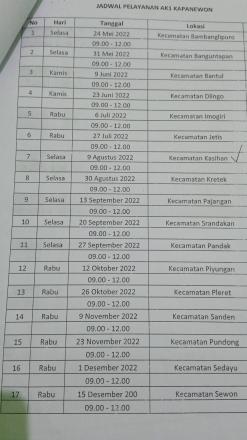 Monggo bagi yang akan mencari Kartu Kuning atau A1, akan dilaksanakan Pelayanan Keliling Kartu A1/Kartu Kuning di Kapanewon Kasihan besok pada hari Selasa, 9 Agustus 2022 pukul 09.00 - 12.00 WIB.