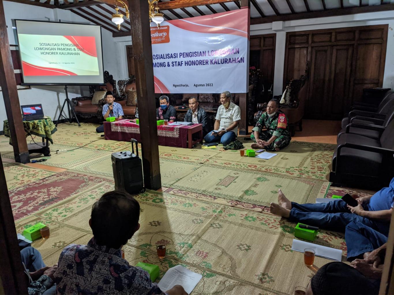 Sosialisasi ini merupakan tindaklanjut atas SK Lurah nomor 19 tentang pembentukan panitia pengisian lowongan pamong dan staf honorer kalurahan. Pada tahun 2022 ini ada 2 dukuh yang purna yaitu Dukuh Sonosewu pada bulan Mei dan Dukuh Sumbean yang akan purna pada bulan November mendatang. Setelah sosialisasi ini akan dibuka pelaksanaan pendaftaran mulai Tanggal 18 Agustus 2022 mendatang.