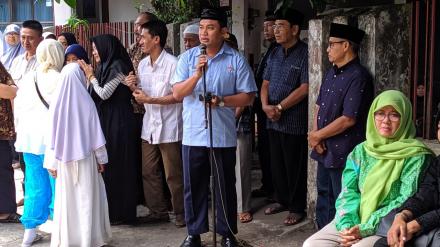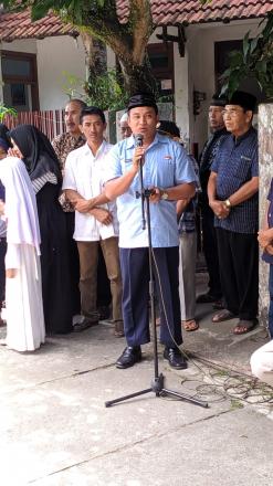 Selasa (11/6) Lurah desa ngestiharjo Fathoni Aribowo memberikan sambutan dalam pemberangkatan jenazah Ibu hj. Siti Mudjariyah di perumahan SGPLB Sonopakis Lor.