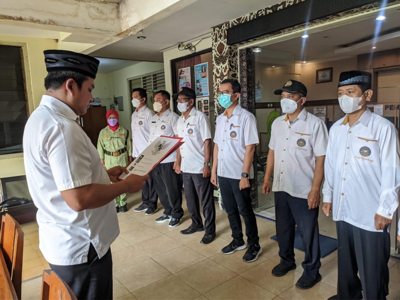Ngestiharjo (28/09) Pamong Ngestiharjo beserta Satlinmas tepat pukul 08.00WIB menyanyikan lagu kebangsaan Indonesia Raya kemudian dilanjutkan dengan pembacaan teks Pancasila oleh Lurah yang ditirukan oleh seluruh peserta.