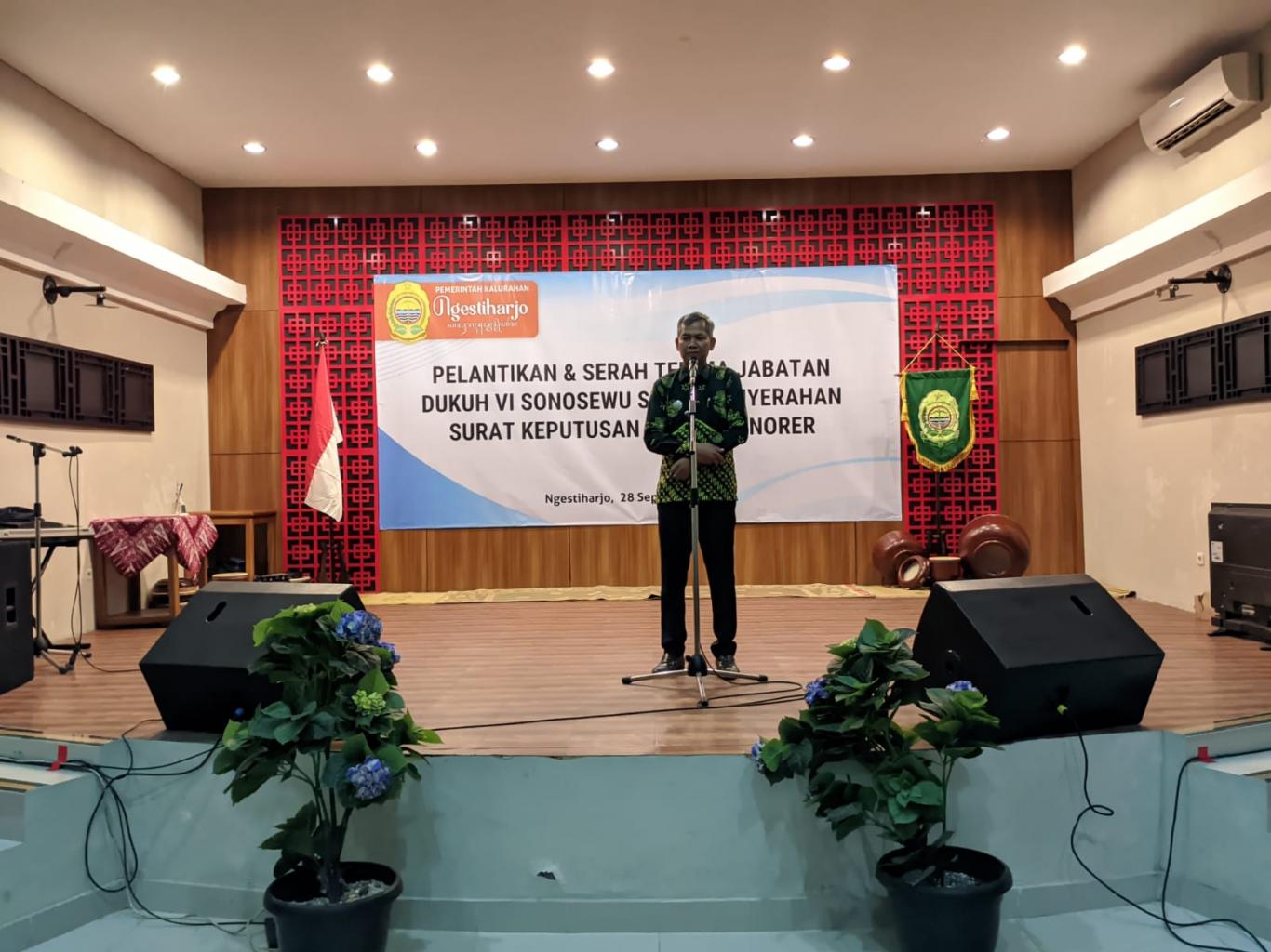 Soragan (28/09) Pemerintah Kalurahan Ngestiharjo menyelenggarakan acara Pelantikan dan Serah Terima Jabatan Dukuh Sonosewu serta Penyerahan SK 3 Staf Honorer di Gedung Hakka, Soragan, Ngestiharjo.
