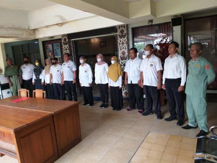Ngestiharjo (22/11) Pamong dan Satlinmas Ngestiharjo tepat pukul 08.00 WIB menyanyikan Lagu Kebangsaan Indonesia Raya kemudian dilanjutkan dengan pembacaan teks Pancasila oleh Lurah diikuti oleh seluruh peserta.