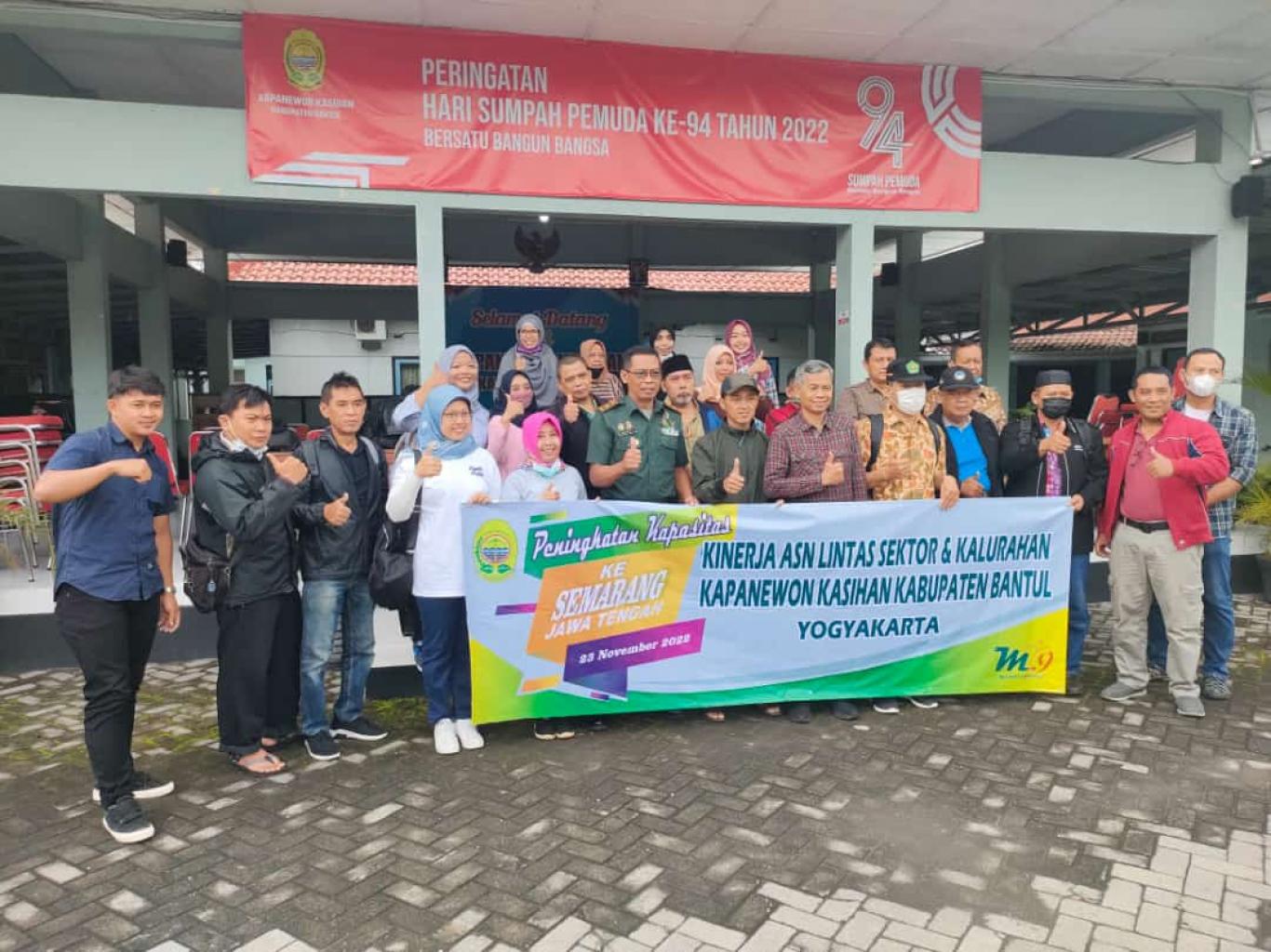 Tirtonirmolo (23/11) Staf Kamituwo mengikuti kegiatan Peningkatan Kapasitas Lintas Sektor ke Semarang di Pendopo Kapanewon Kasihan. Sebelum berangkat ke Semarang, dilakukan apel terlebih dahulu di Pendopo. Turut hadir Sekretaris Komisi A DPRD Kab Bantul Jumakir memberikan sambutan dan materi terkait peningkatan kapasitas.