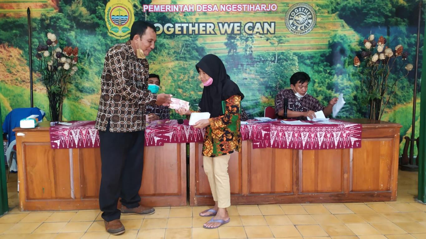 Ngestiharjo (08/12) Pemerintah Kalurahan Ngestiharjo menyalurkan Bantuan Langsung Tunai (BLT) Dana Desa (DD) kepada 211 KPM di Aula Kalurahan. Turut hadir dalam penyaluran BLT DD ini Kawat Sosial Kapanewon Kasihan Medi Siswantara, M.Pd, Kamituwo dan staf.