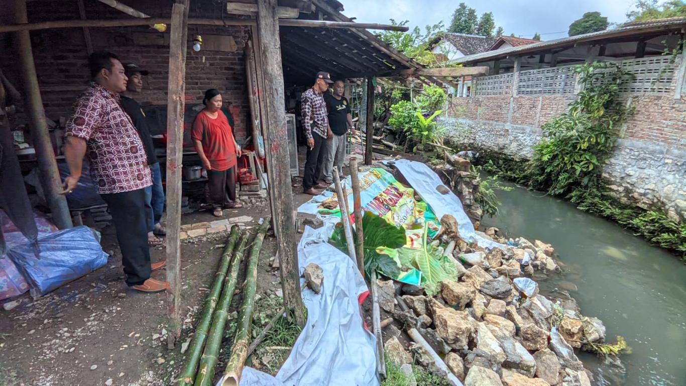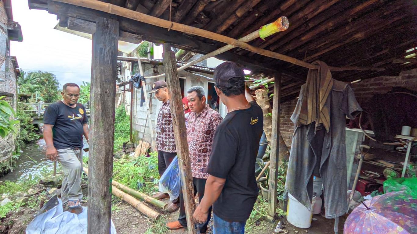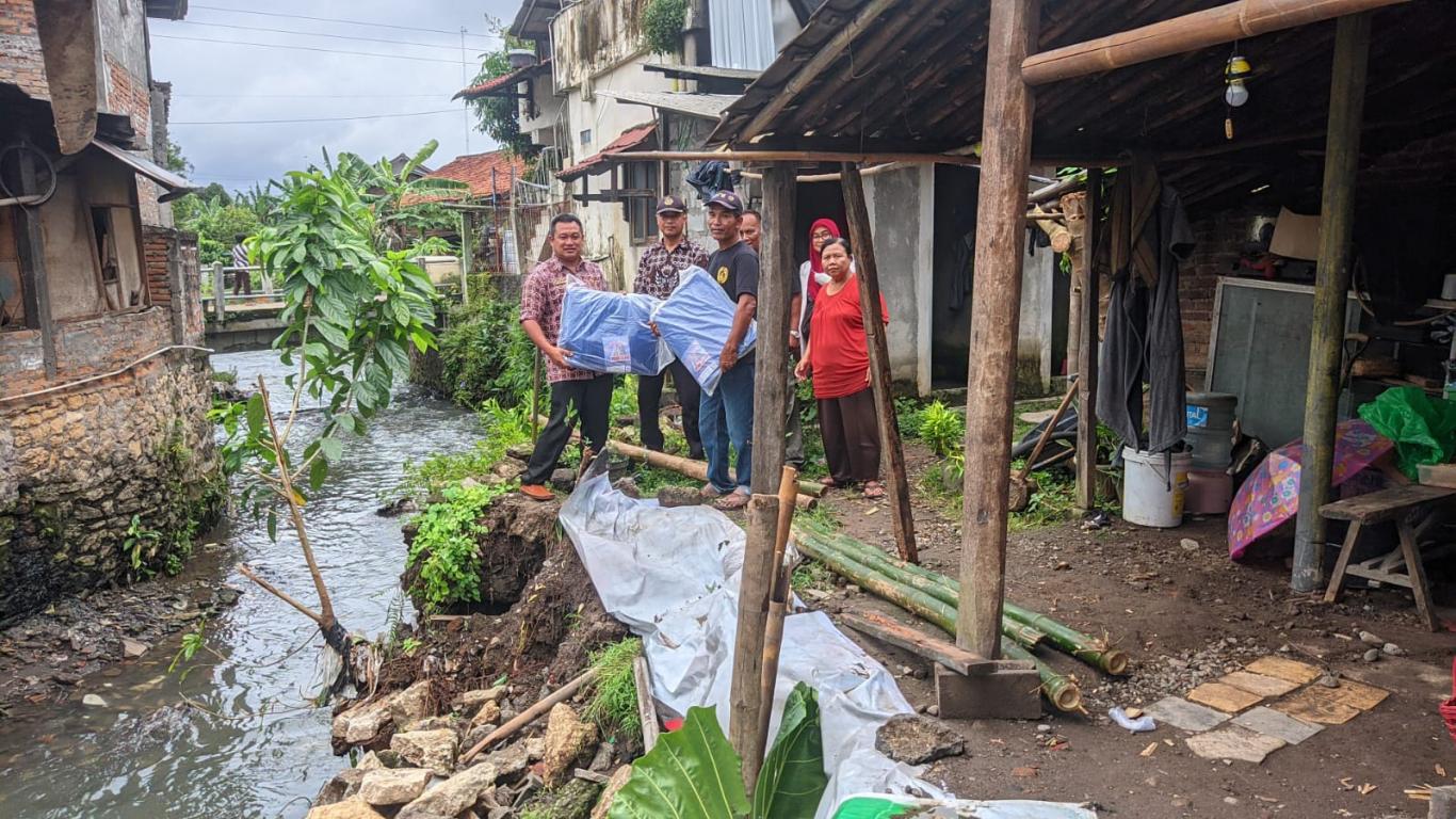 Jomegatan (16/02) Lurah, Dukuh Jomegatan, dan Staf Kalurahan Ngestiharjo menyerahan bantuan terpal kepada Bp Supardiyana warga Jomegatan RT. 07 yang rumahnya terdampak longsor talud/bangket sungai Widuri.