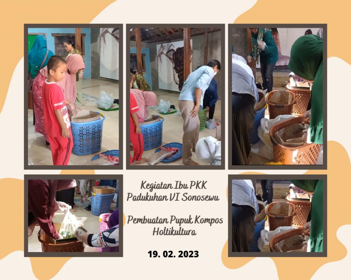 Sonosewu (19/02) . Pada hari Minggu, 19 Februari 2023 telah dilaksanakan kegiatan pembuatan pupuk Kompos Hortikultura bersama KKN Poltekes dan ibu-ibu PKK Padukuhan VI Sonosewu. Bertempat di Pendopo Padukuhan VI Sonosewu jalan kesejahteraan Sosial RT 12, kegiatan berjalan lancar dan ibu-ibu PKK memiliki antusias yang tinggi terkait pengelolaan masalah sampah rumah tangga.