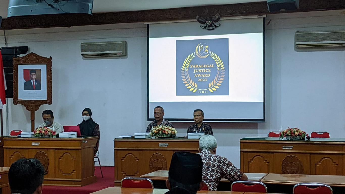 Bantul (02/03) Carik Ngestiharjo menghadiri Sosialisasi Paralegal Justice Award di Gedung Induk Lantai 3 Kompleks Parasamya. Sosialisasi ini dibuka oleh Kabag Hukum Setda Bantul Suparman, S. IP, M.Hum. Dalam sambutannya, Kabag Hukum menyampaikan terkait apa yang dimaksud dengan Paralegal Justice Award, dimana peran Lurah dalam penanganan permasalahan di Kalurahan yang kadang cukup kompleks, seperti permasalahan batas tanah antar warga, masalah RT, masalah kekerasan. Singkat kata peran dari Lurah ataupun perangkat yang merupakan juru damai desa.