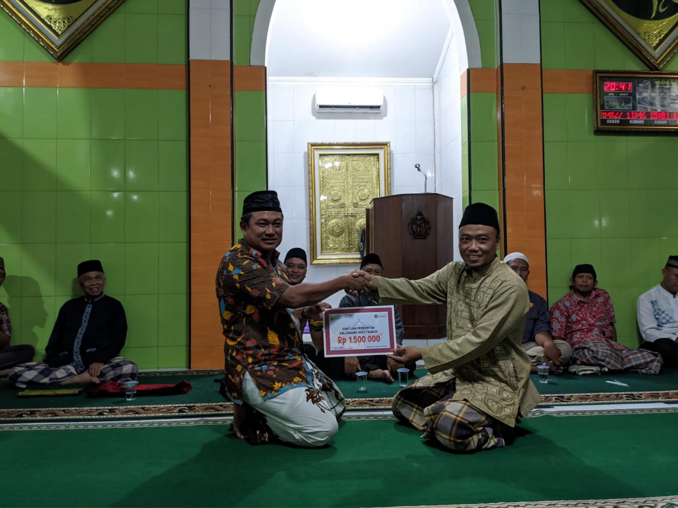 Setelah sambutan , Pemerintah Kalurahan Ngestiharjo memberikan simbolis dana sebesar Rp 1.500.000 kepada takmir untuk memperlancar kegiatan mushola. Acara diakhiri dengan foto bersama.