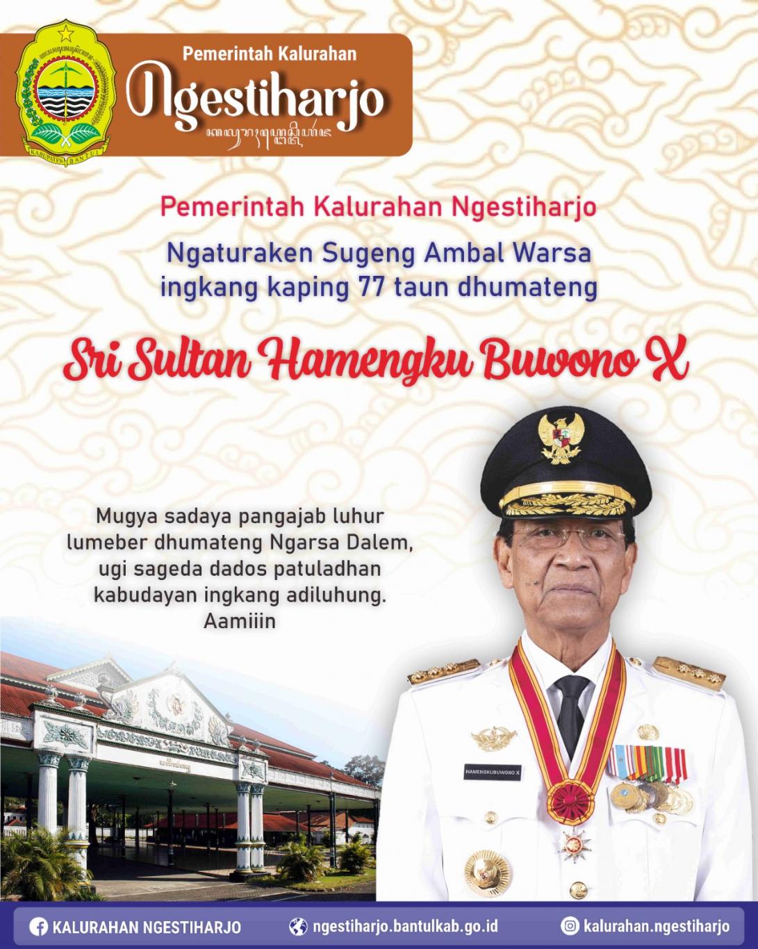Pemerintah Kalurahan Ngestiharjo Kasihan Bantul ngaturaken Sugeng Ambal Warsa dumatheng Sri Sultan Hamengku Buwono X Kaping 77