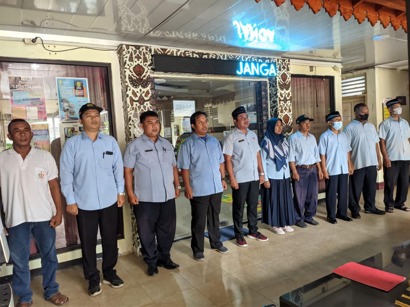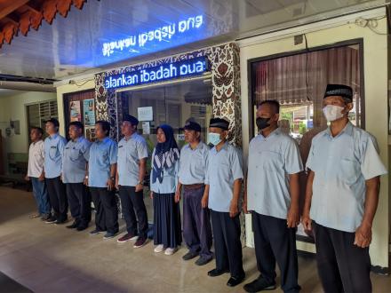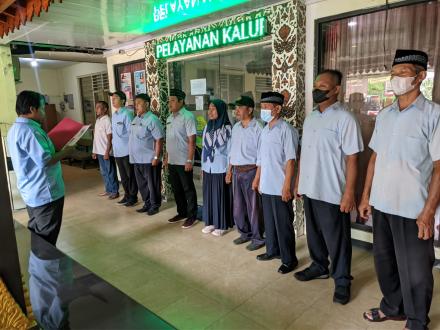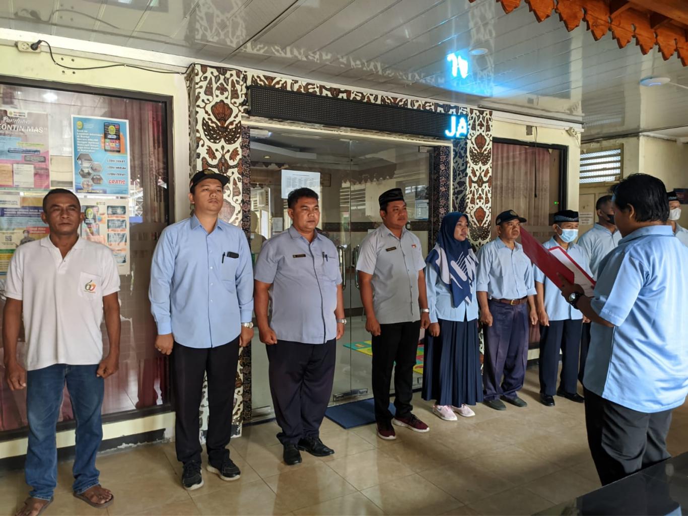 Ngesiharjo (4/4) Pamong Kalurahan Ngestiharjo beserta Satlinmas tepat pukul 08.00 menyanyikan lagu kebangsaan Indonesia Raya dan pembacaan teks Pancasila sebelum melaksanakan pelayanan kepada masyarakat.