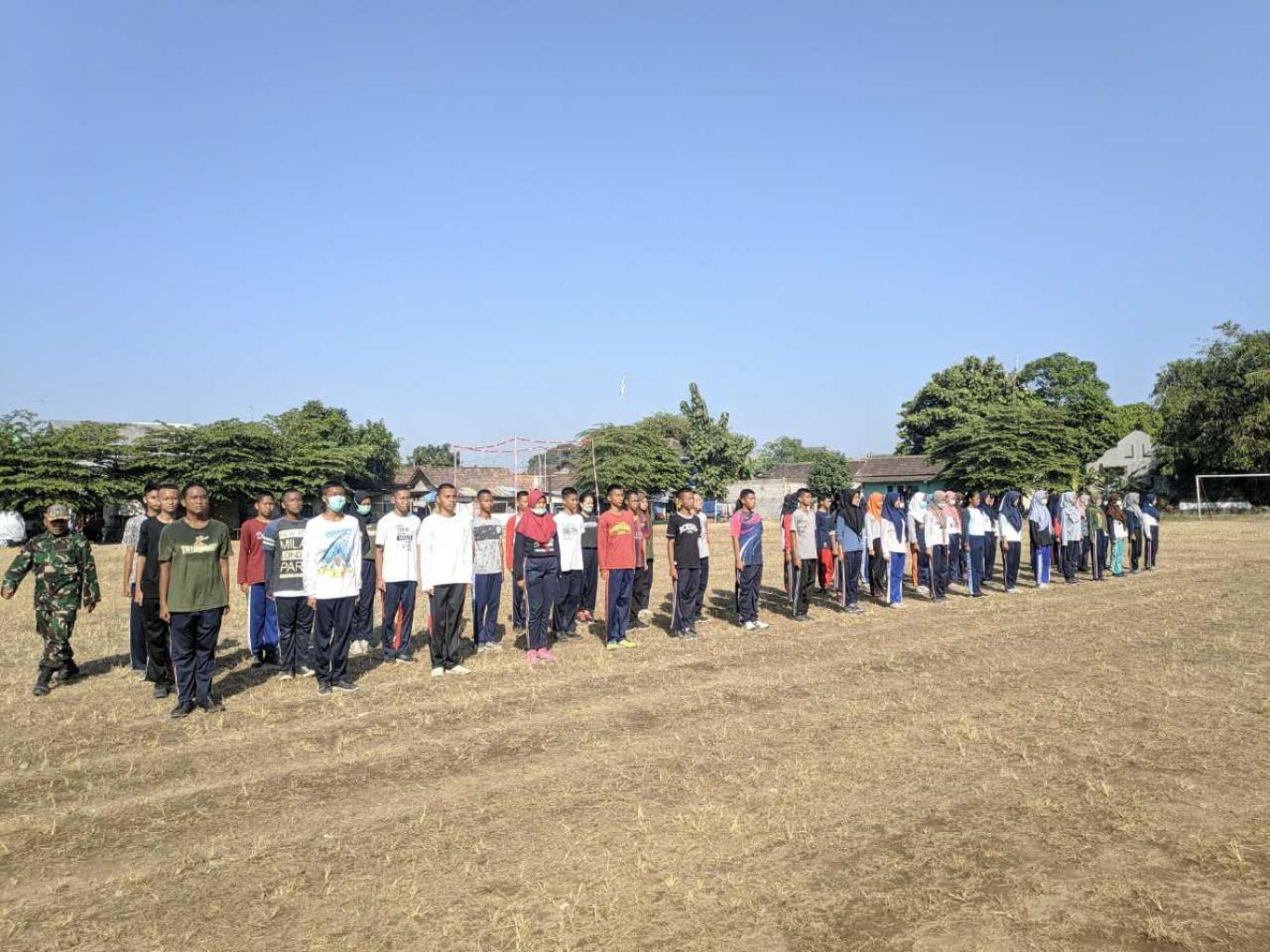 Lurah Desa Ngestiharjo mengawasi Jalannya Latihan Paskibra di lapangan Dasa Warsa Kadipiro