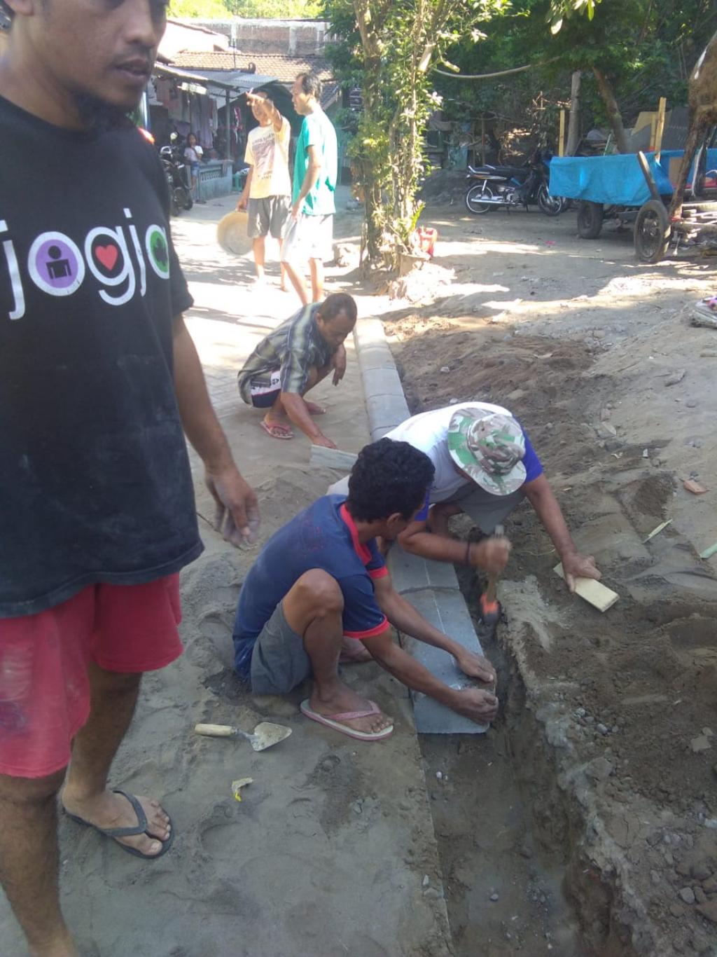 Sidorejo (14/7) Warga RT 09 Pedukuhan XII Sidorejo melakukan giat kerja bakti Pemasangan Paving Block di jalan wilayah RT 09 Pedukuhan Sidorejo. Paving Block ini adalah bantuan dari pemerintah desa Ngestiharjo.