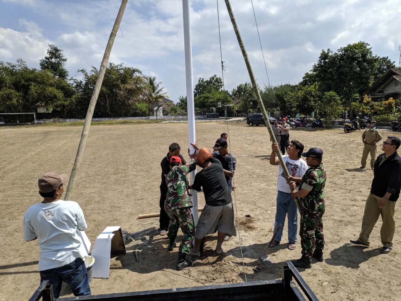 Pemasangan Tiang Bendera di Lapangan Dasa Warsa Kadipiro