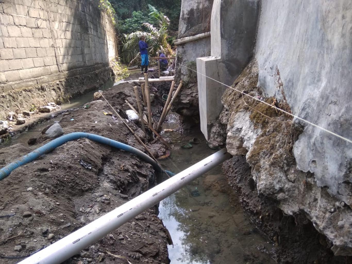 Onggobayan ( 18/7 ) Pemerintah Desa Ngestiharjo melaksanakan tinjauan lapangan terkait aktivitas pembangunan bangket kalibuntung, karena mendapatkan laporan dari masyarakat terkait perihal tersebut diatas. hal ini dilakukan untuk memastikan apakah aktivitas tersebut berdampak pada aliran kali buntung apa tidak, setelah dilakukan pengecekan yang didampingi ketua RT 02 pedukuhan XI Onggobayan yaitu Bp. Dalyana diperoleh bahwa aktivitas tersebut dilakukan untuk mencegah longsor pada bangunan yang posisinya persis dipinggir bibir sungai, dan pimpinan proyek tersebut sanggup untuk mengembalikan tanah uruk yang saat ini memenuhi sebagian aliran sungai, sehingga tidak menggangu arus sungai yang ada saat ini..