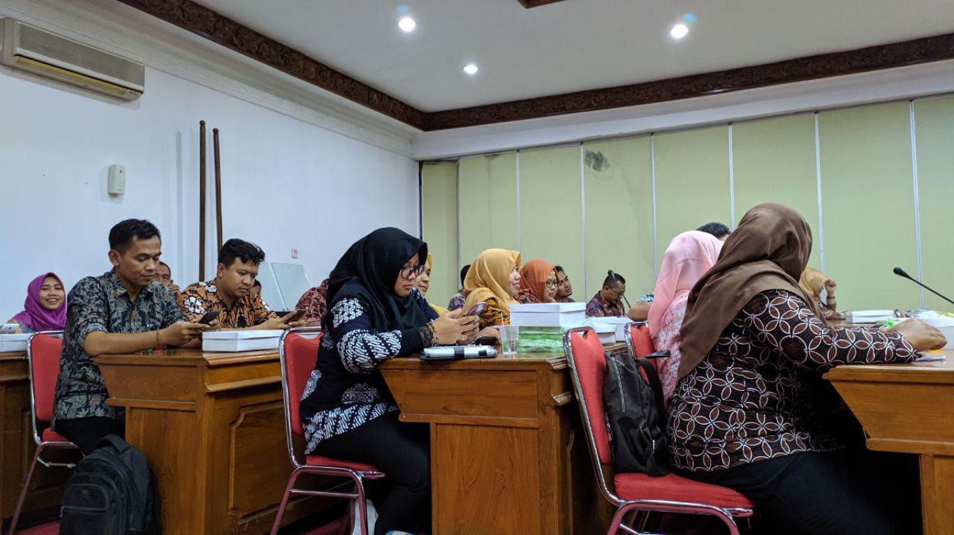 Bantul (18/07) Adpemdes Kabupaten Bantul mengundang Carik Desa sekabupaten Bantul di Gedung Induk Lantai 3 Komplek Parasamya untuk evaluasi pelaksanaan APBDesa Semester I dan Pelaksanaan DD. Acara di buka oleh kasubag Supriyanta kemudian dilanjutkan dengan sambutan oleh Asisten Pemerintahan Dra. Sri Ediastuti, M,Sc. Ibu Asisten menyampaikan hingga pada bulan Juli 2019 masih ada desa yang belum menyelesaikan tanggung jawabnya untuk melaporkan evaluasi pelaksanaan APBDes dan Pelaksanaan DD kepada Bupati melalui Camat.
