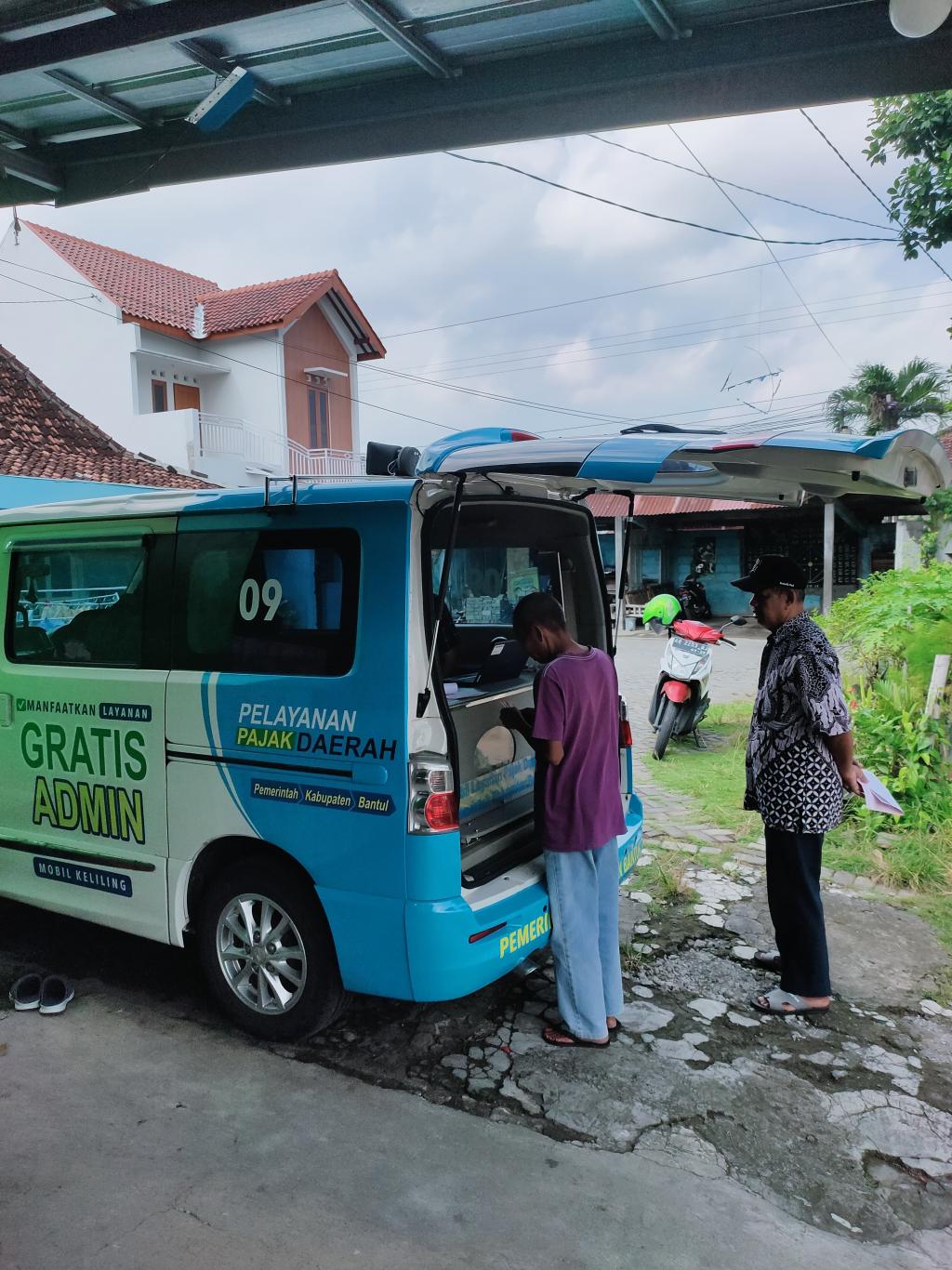 Ngestiharjo (11/04) Mobil Keliling PBB menyelenggarakan Pelayanan Pembayaran Pajak PBB di Jomegatan dan Sumberan.