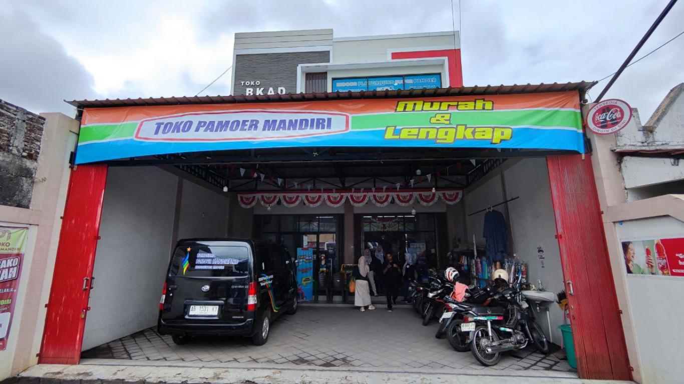 Kemudian rombongan menuju ke toko Pamoer Mandiri di Kalurahan Sriharjo yang berjarak 4 km dari Kantor Kapanewon Imogiri untuk melihat toko dan berdiskusi dengan pengelola.