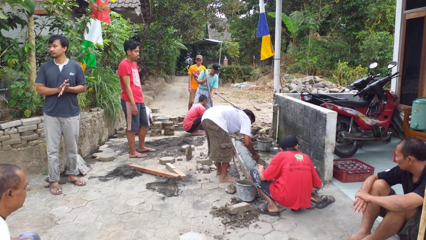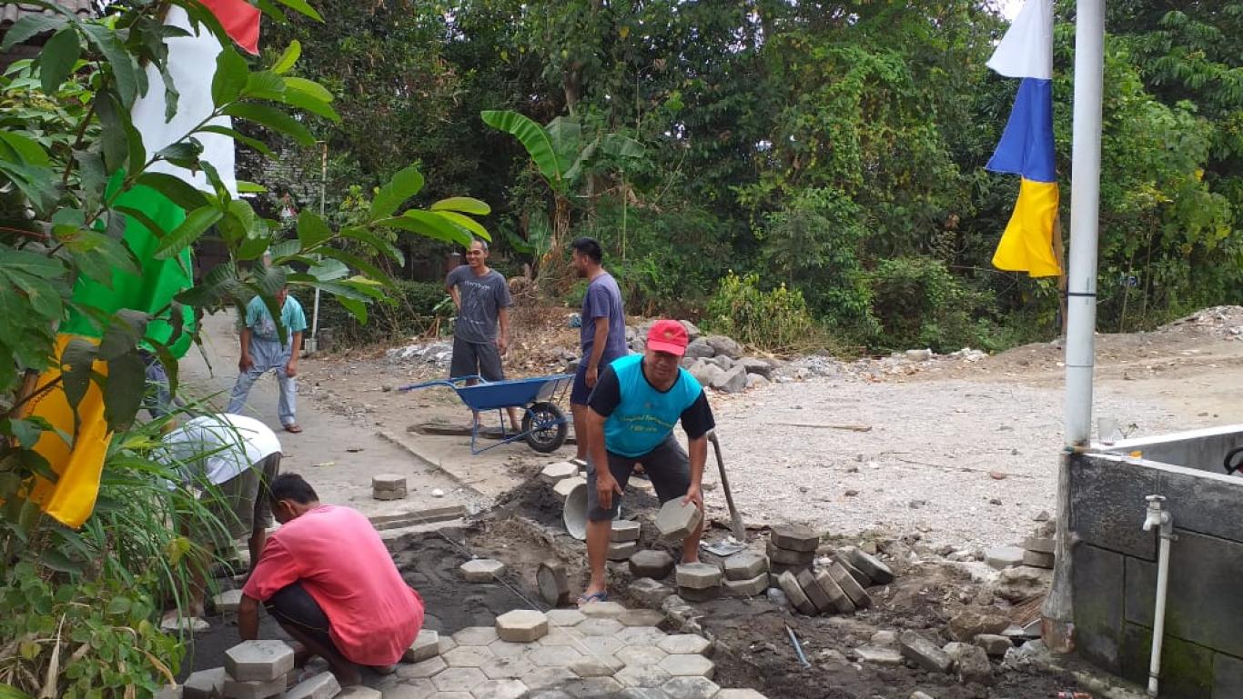 Kerja Bakti Renovasi Konblok Jalan RT 05 Onggobayan