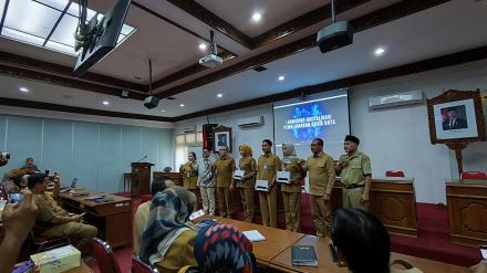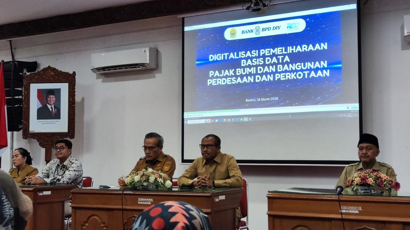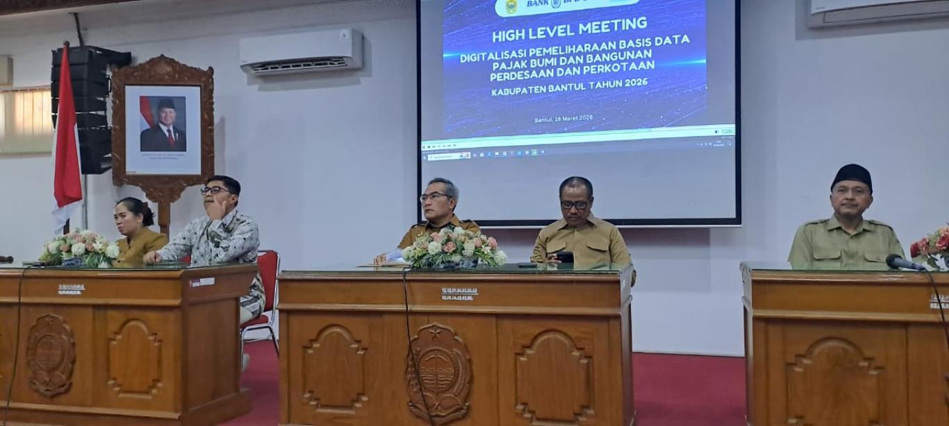 Bantul (16/03) Carik Ngestiharjo mengikuti High leveling Meeting Digitalisasi pemeliharaan basis data pajak bumi dan bangunan perdesaan dan perkotaan di Gedung Induk Lt 3 Parasamya. Kegiatan ini diikuti oleh Bapak Bupati Bantul, Perwakilan BPD DIY Cabang Bantul, Asisten Administrasi Umum, Kepala BPKPAD Bantul, perwakilan dari 75 Kalurahan. Kegiatan dimulai dengan sambutan selamat datang dari Kepala BPKPAD Bantul Ibu Istirul Widilastuti, S.IP. MPA, dilanjutkan dengan sambutan oleh perwakilan BPD DIY Cabang Bantul. Kemudian dilanjutkan dengan pemaparan oleh Bapak Bupati Bantul H. Abdul Halim Muslim terkait dengan kegiatan digitalisasi pemeliharaan basis data pajak bumi dan bantunan perkotaan yang sudah mulai dilakukan dengan penyerahan simbol peralatan pendataan kepada petugas dari BPKPAD.