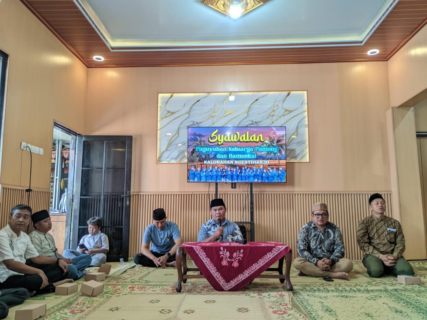 Acara syawalan keluarga pamong di Kalurahan Ngestiharjo berlangsung dengan penuh kehangatan dan suasana kekeluargaan. Kegiatan ini dilaksanakan sebagai bentuk silaturahmi pasca perayaan Idulfitri, sekaligus mempererat hubungan antar pamong kalurahan beserta keluarga mereka.