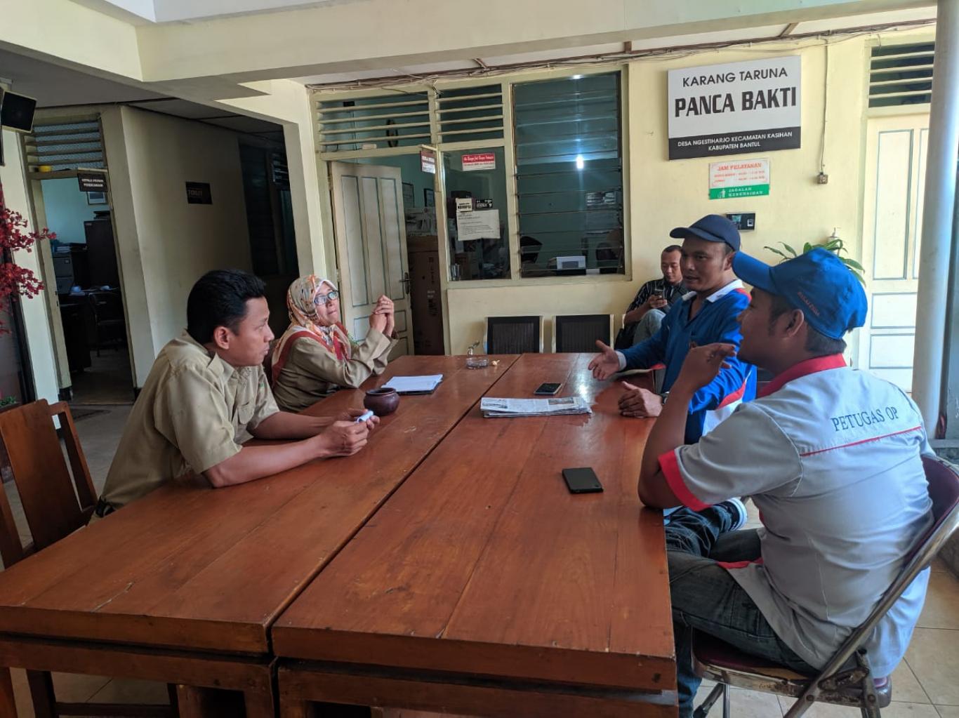 Ngestiharjo(02/09) OP PSDA Daerah Istimewa Yogayakarta mendatangi kantor Desa Ngestiharjo dalam koordinasi penanganan sampah di aliran irisgisi yang terletak di Pedukuhan Sonopakis Lor. Dalam koordinasi kali ini pihak PSDA DIY menytakan bahwa mereka sudah melakukan pembersihan terhadap parit yang ada dilokasi tersebut pada Jum'at 30 Agustus 2019, namun setelah dua hari berselang sampah kembali muncul. Hal ini sangatlah disayangkan karena sikap ketidakpedulian warga dalam menjaga lingkungan sekitar masih dirasa minim, sehingga perlu sikap tegas dari pihak Pemerintah Desa Ngestiharjo untuk mengingatkan dan menghimbau warga untuk tidak membuang sampah di parit.