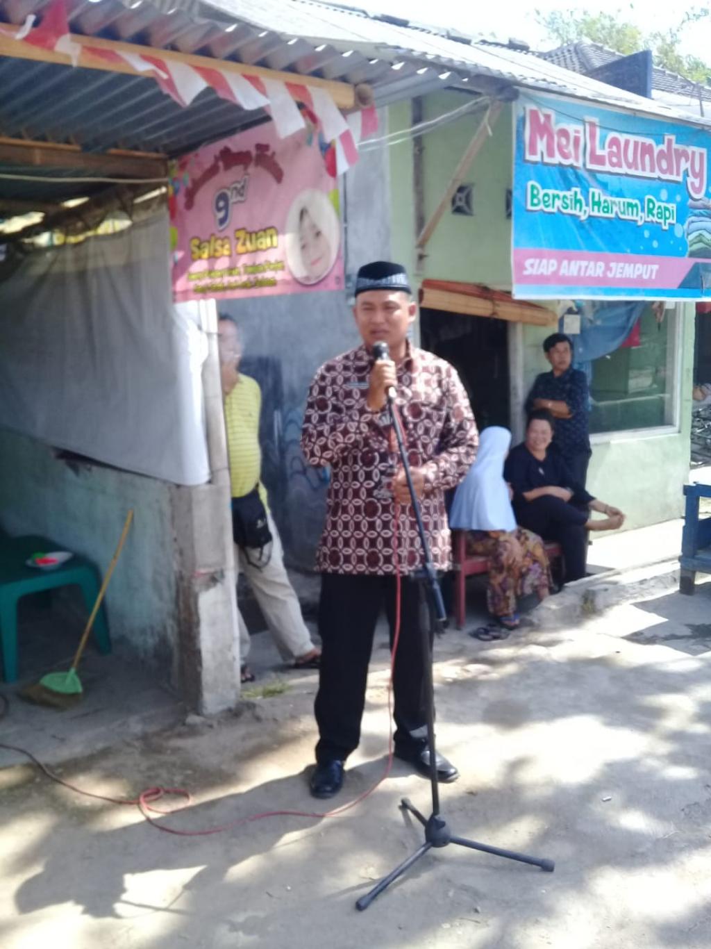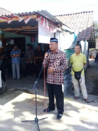 Kadipiro (05/09) Sambutan bapak Lurah Desa Ngestiharjo Fathoni Aribowo di upacara pemberangkatan jenazah ibu barsiah, warga kadipiro rt 07 dan penyerahan Akte Kematian kepada ahli warisnya.