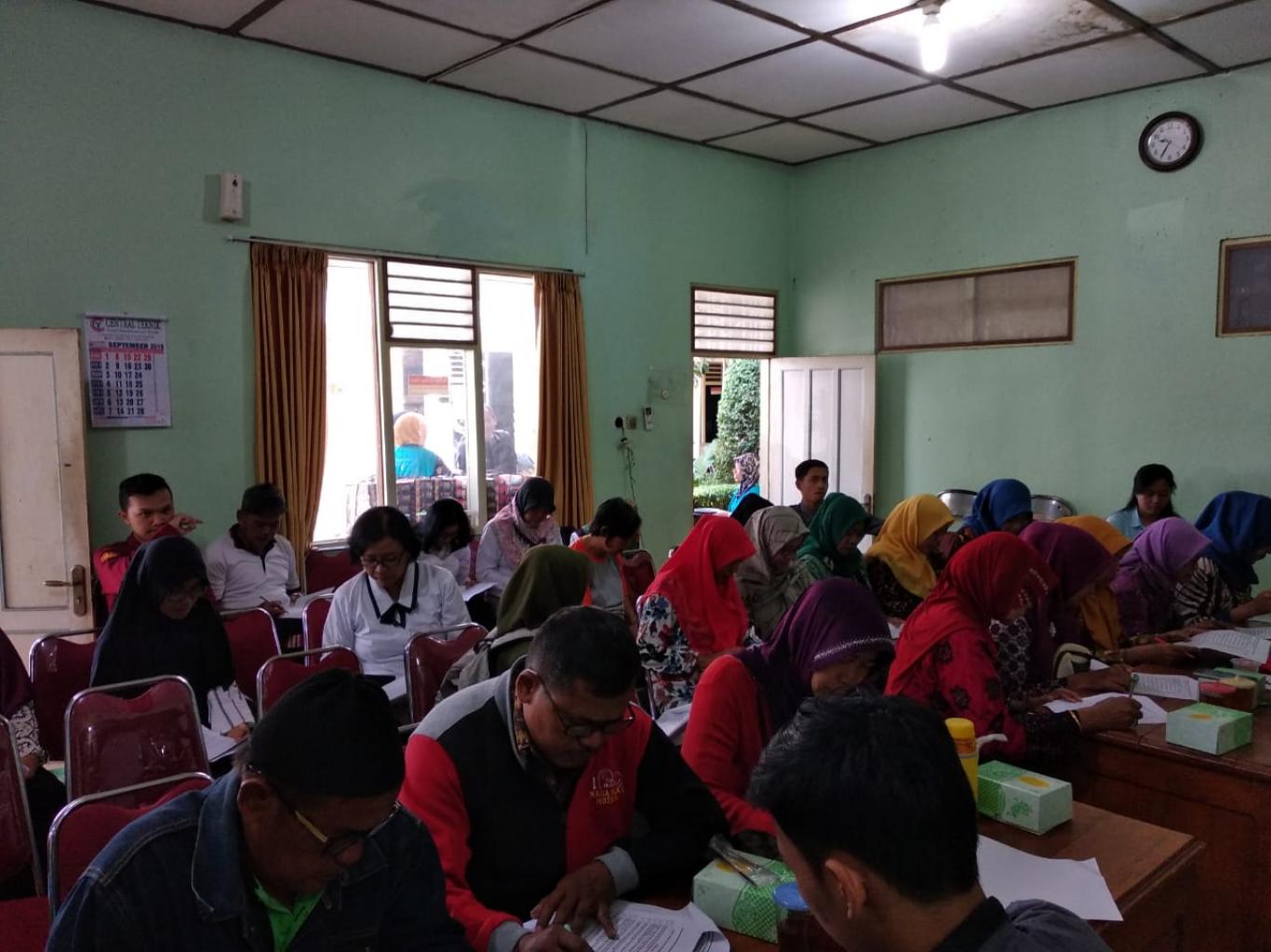 Ngestiharjo (11/09) Dalam rangka pengukuran efektivitas dan keberhasilan kegiatan intervensi keamanan pangan, Baiai Besar POM di Yogyakarta menyelenggarakan kegiatan Monitoring dan Evaluasi Pembentukan Desa Pangan Aman pada desa yang menjadi target intervensi Program Gerakan Keamanan Pangan Desa (GKPD) tahun 2018. kegiatan Monitoring dan Evaluasi Program Gerakan Keamanan Pangan Desa dengan mengundang 65 (enam puluh lima) responden. Selain Wawancara Pengisian Kuesioner juga dilakukan observasi ke lokasi oleh Mahasiswa dan Petugas BBPOM. Responden yang ditunjuk adalah sama dengan peserta Gap Assessment, Bimtek Komunitas dan Fasilitasi yang telah dilaksanakan di tahun 2018.