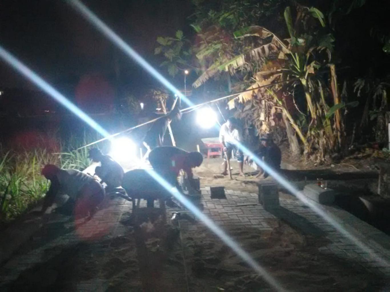 Aktivitas kerjabakti pemasangan paving blok di jalan lingkar kampung Onggobayan warga RT 02 dan 03 Pedukuhan XI Onggobayan meskipun malam hari tetap dilaksanakan, hal ini dilakukan karena semangat gotong royong warga masih tetap terjaga dengan baik serta agar supaya pengerjaan segera selesai sesuai timeline dan bisa dimanfaatkan oleh pengguna jalan. Tahapan pengerjaan sampai saat ini sudah memasuki 92% dari total panjang jalan 660 meter dan sumber pendanaan dari alokasi dana BKK dibackup swadaya masyarakat.