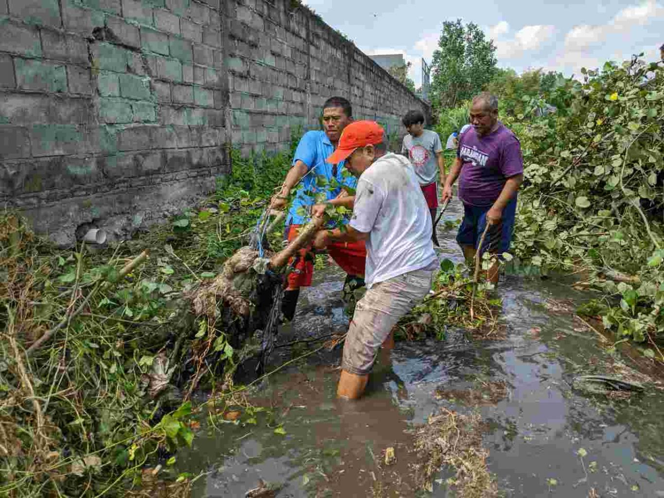 Setelah tengah hari, backhoe berpindah ke aliran sungai wilayah RT 09. Backhoe mengangkat endapan lumpur yang telah membuat sungai menjadi dangkal.